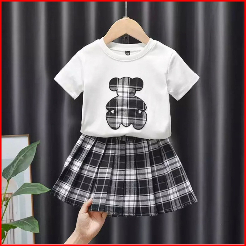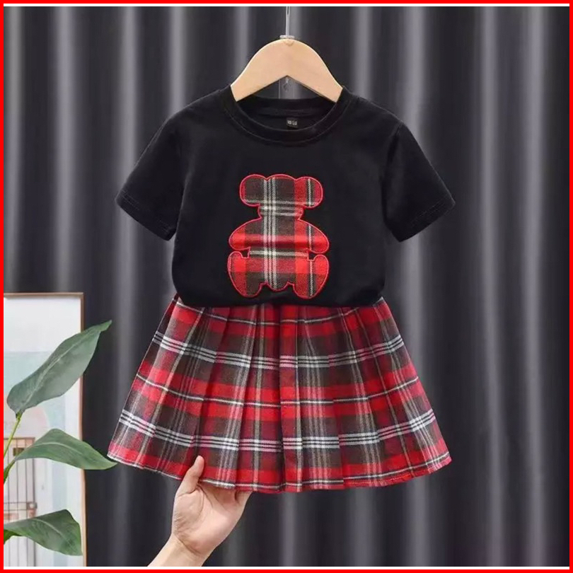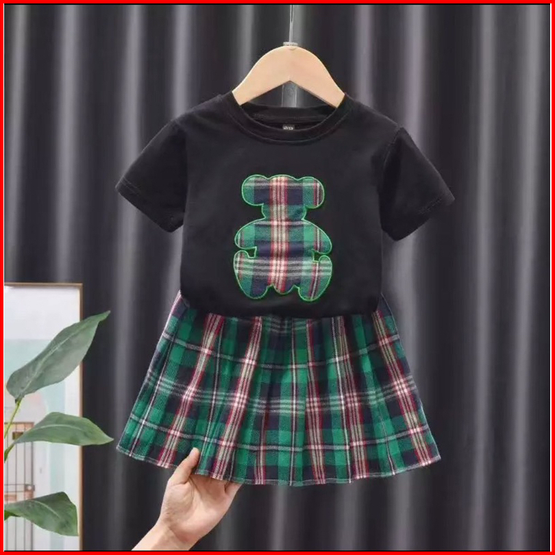 Setelan Dres Anak Perempuan Baju Kaos Lengan Pendek Dan Rok Anak Perempuan Motif Karakter Usia 1-5tahun