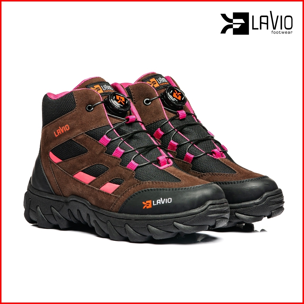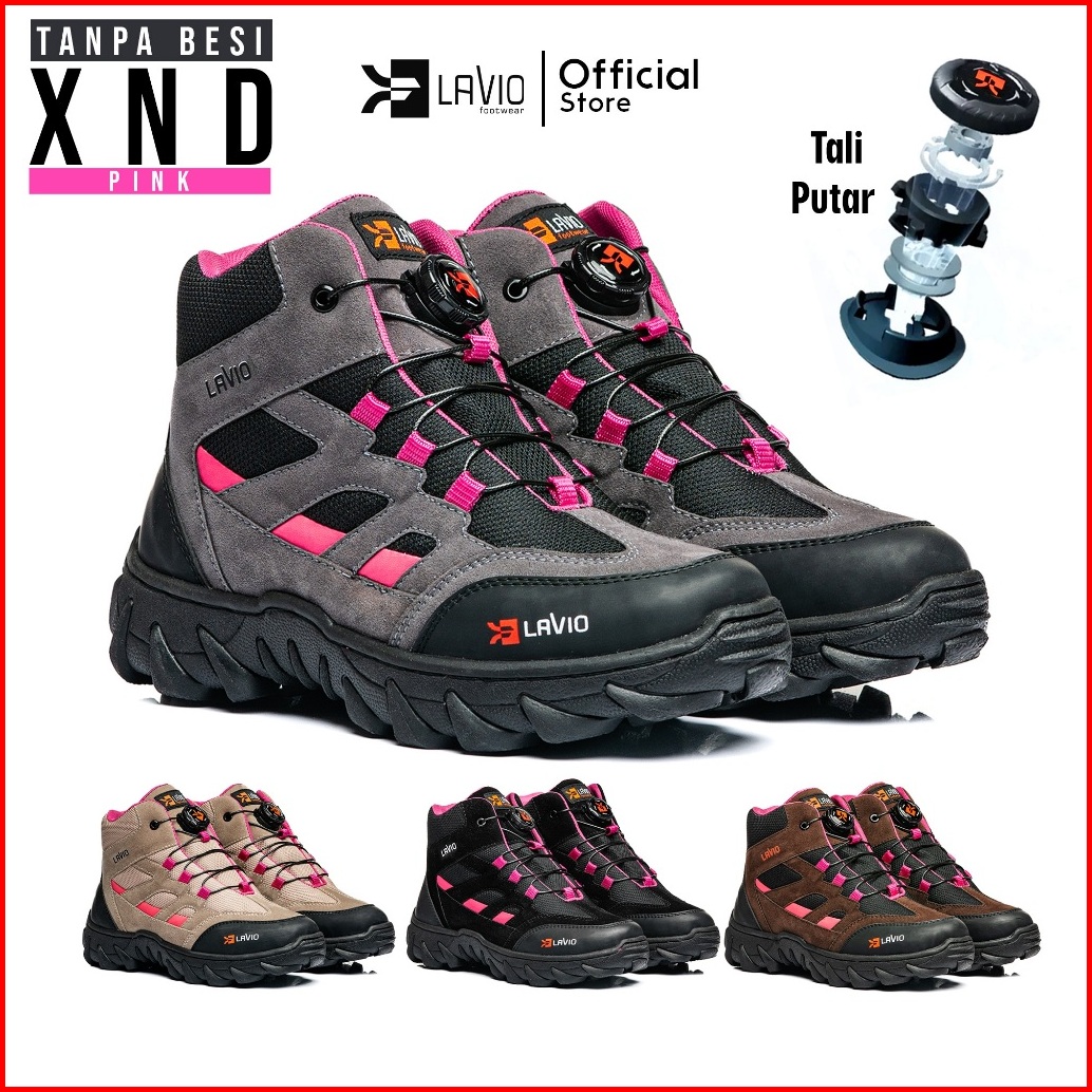 Lavio Xnd Pink Trekking Sepatu Wanita Pria Boots Hiking Trekking Tektok Kerja Tali Putar Spin-on Lacing Reflector Best Q