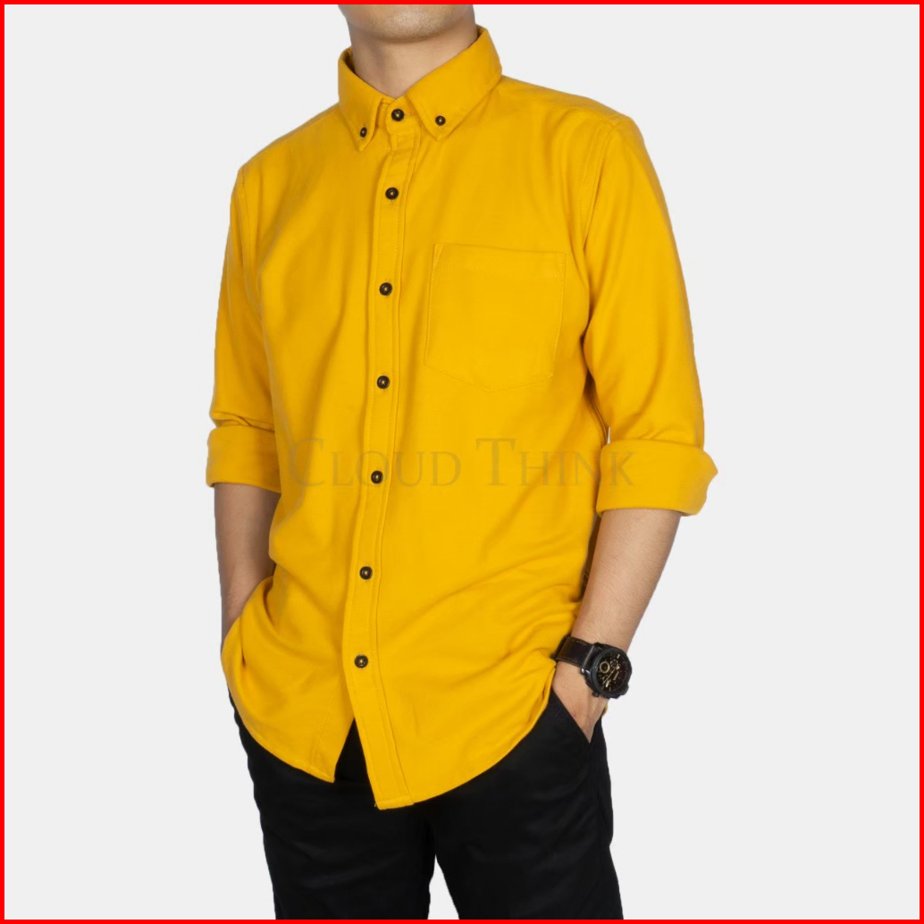 Kemeja Pria Lengan Panjang Mustard Cloudthink Cotton Pique