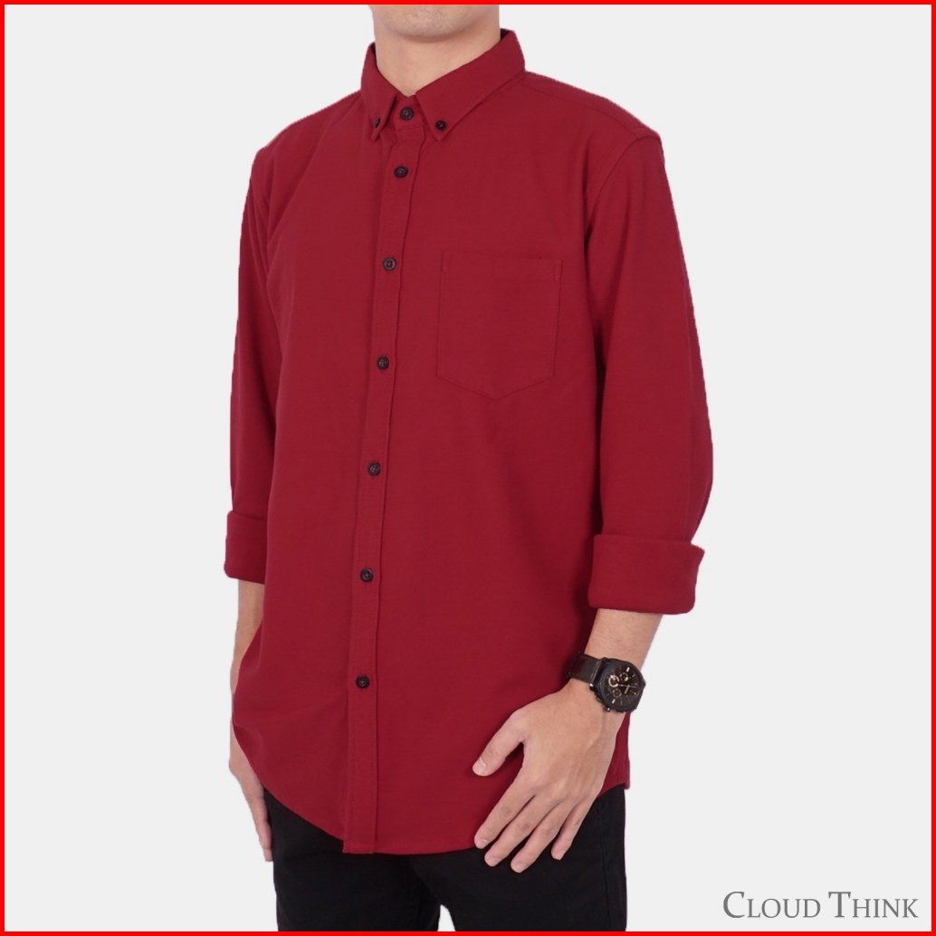 Kemeja Pria Lengan Panjang Red Ruby Cloudthink Cotton Pique