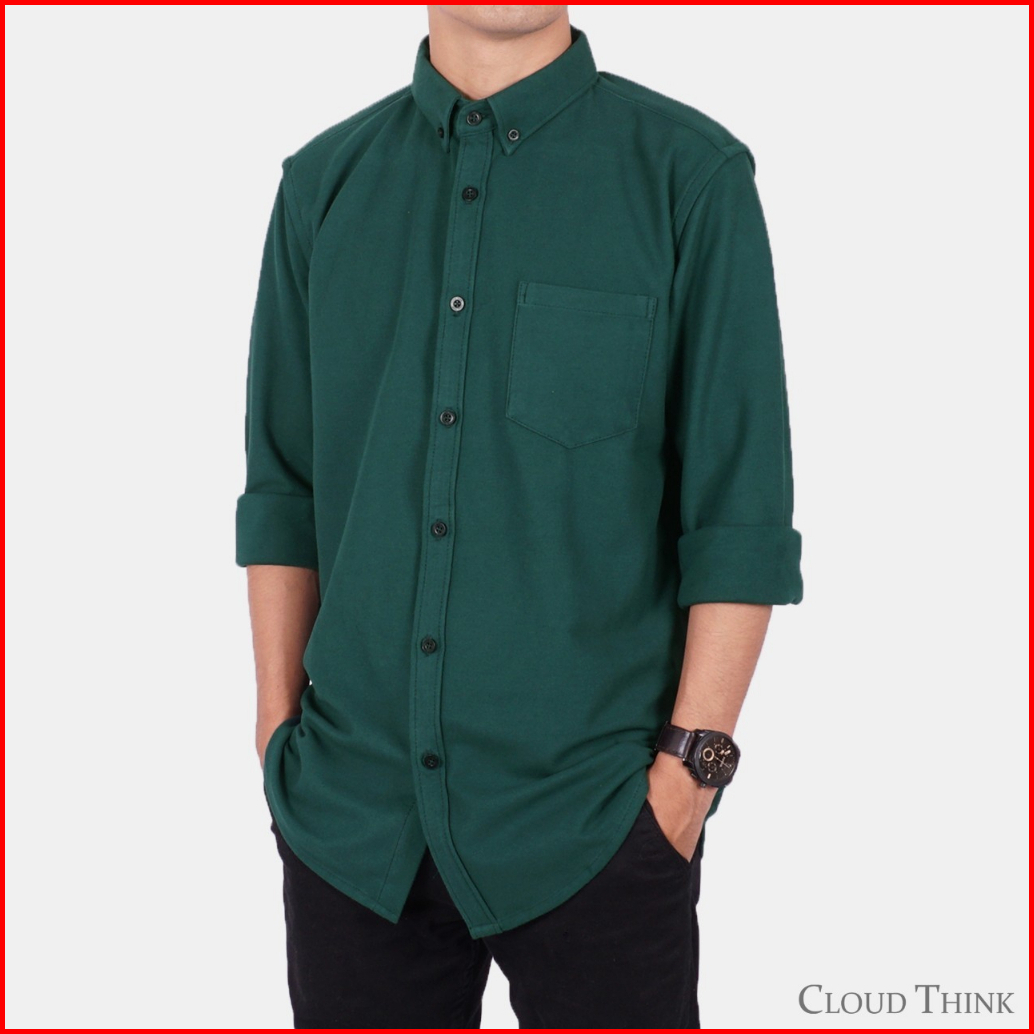 Kemeja Pria Lengan Panjang Hijau Botol Cloudthink Cotton Pique