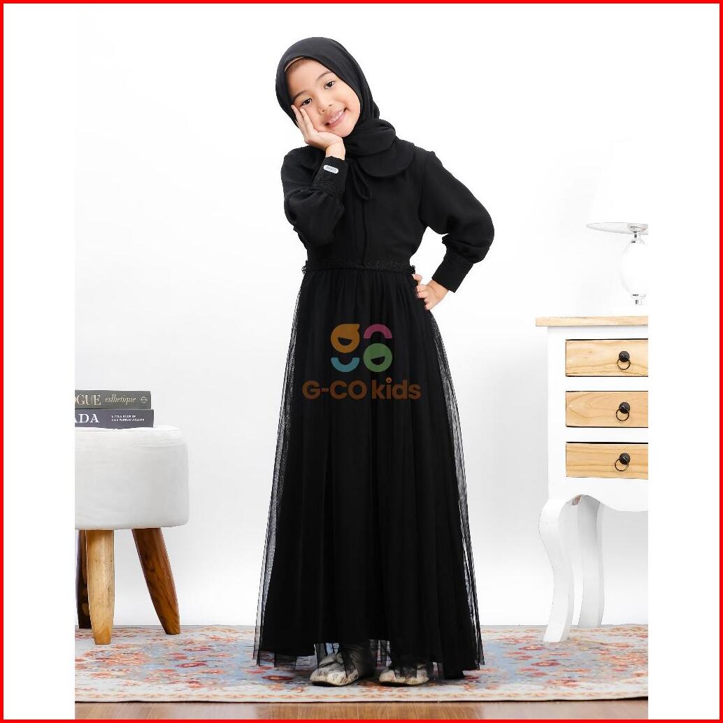 Gamis Anak Perempuan Kania Dress Crinkle Renda Tutu Tile Set Hijab Usia 5-12 Tahun G-co Kids