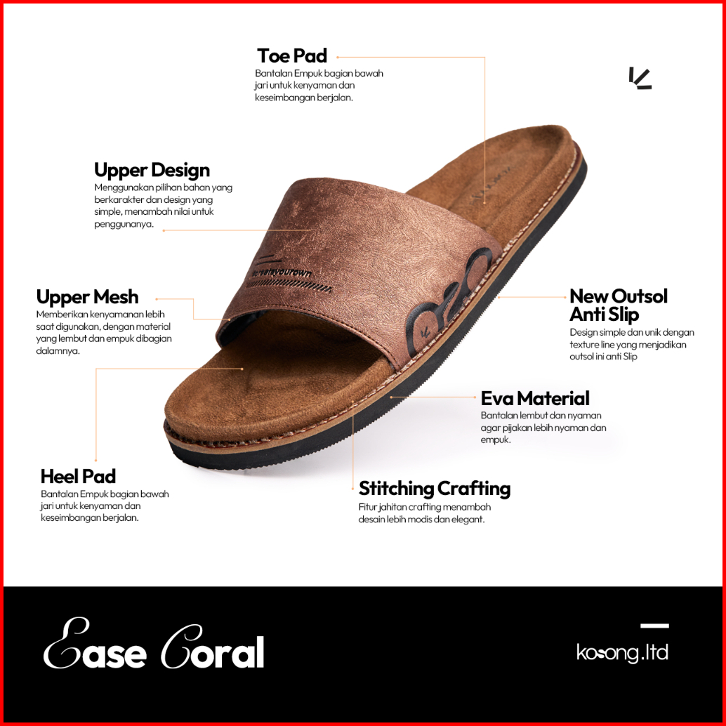 Kosong.ltd Sandal Slop Slide Pria-wanita Ease Coral - Brown