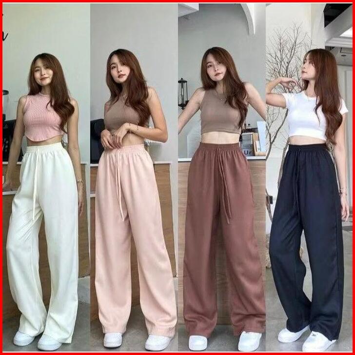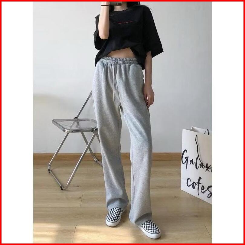 Celana Panjang Sweatpants Basic Kulot Highwaist Korean Style Training Loose Pants Casual Lembut Nyaman Tebal Kantong Kar