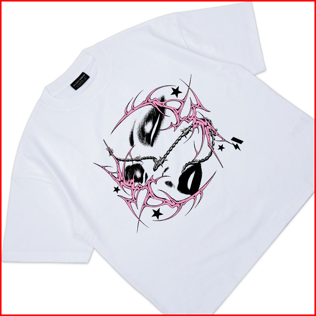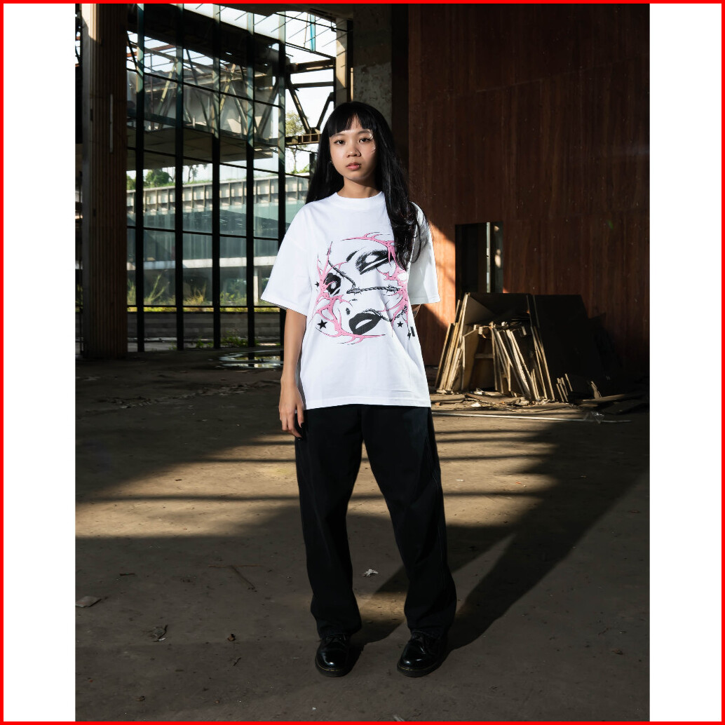 Accentambios Boxy Oversized Tshirt Girl Chain White - Cotton Combed 20s