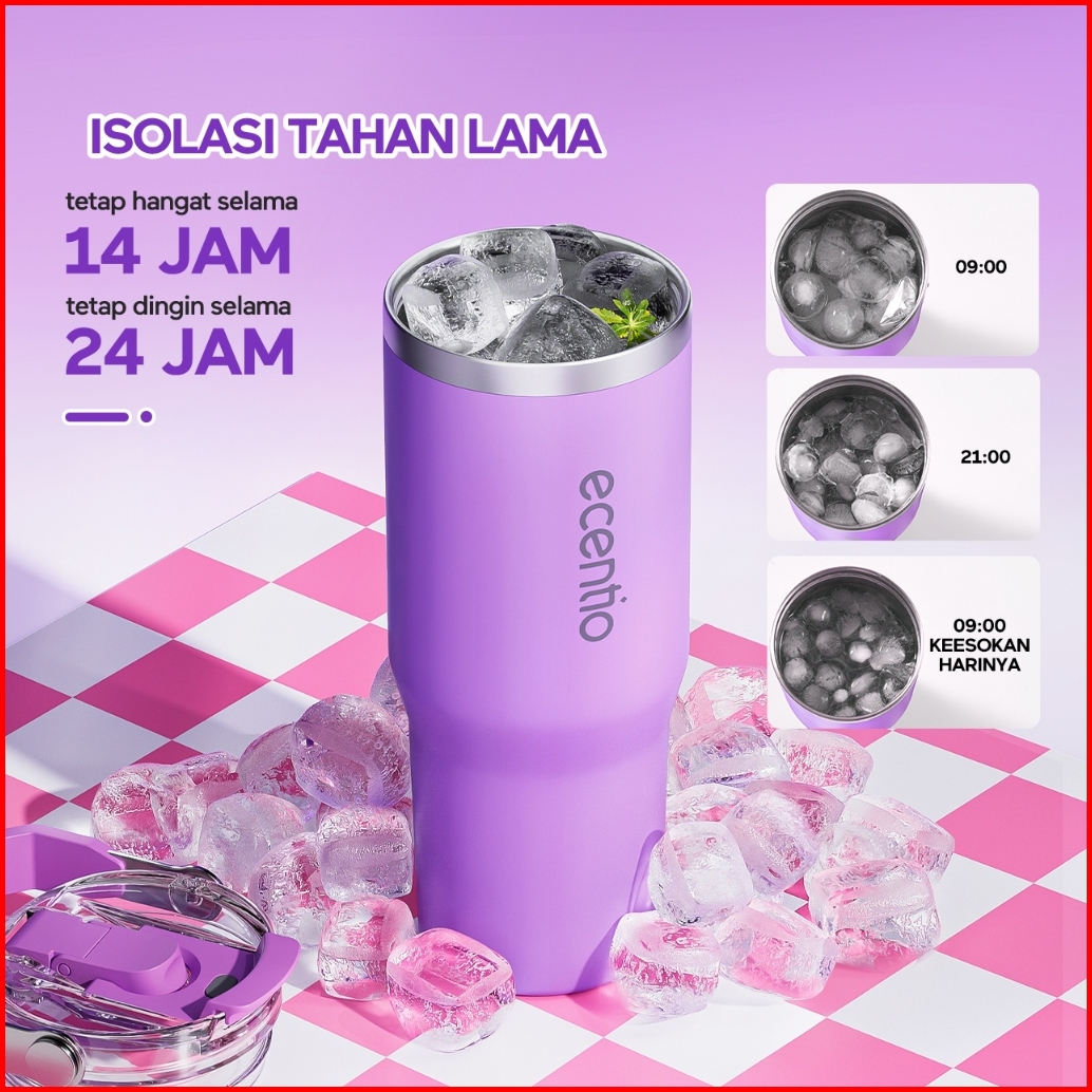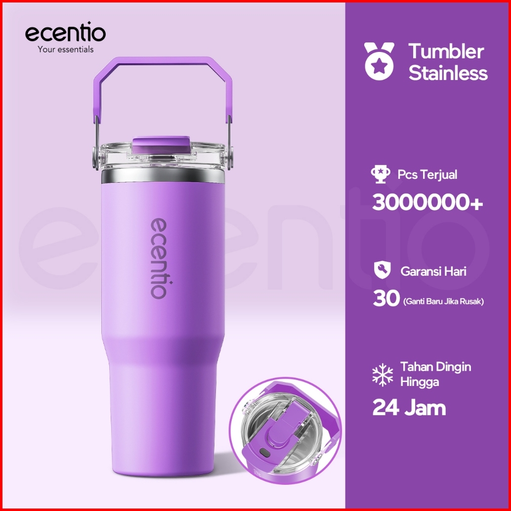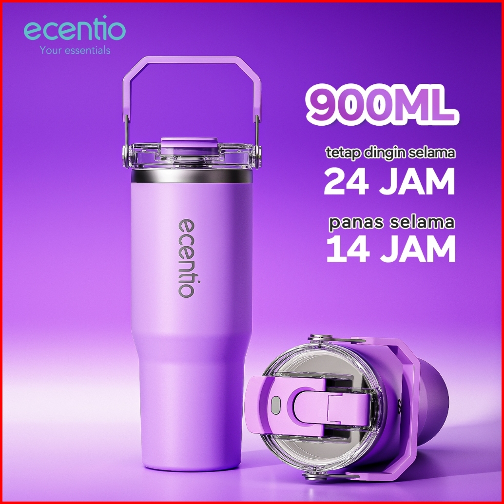 Ecentio Lavender Purple Tumbler Stainless 900ml Vacuum Insulated Tahan Digin 24 Jam Portable Botol Minum Besar