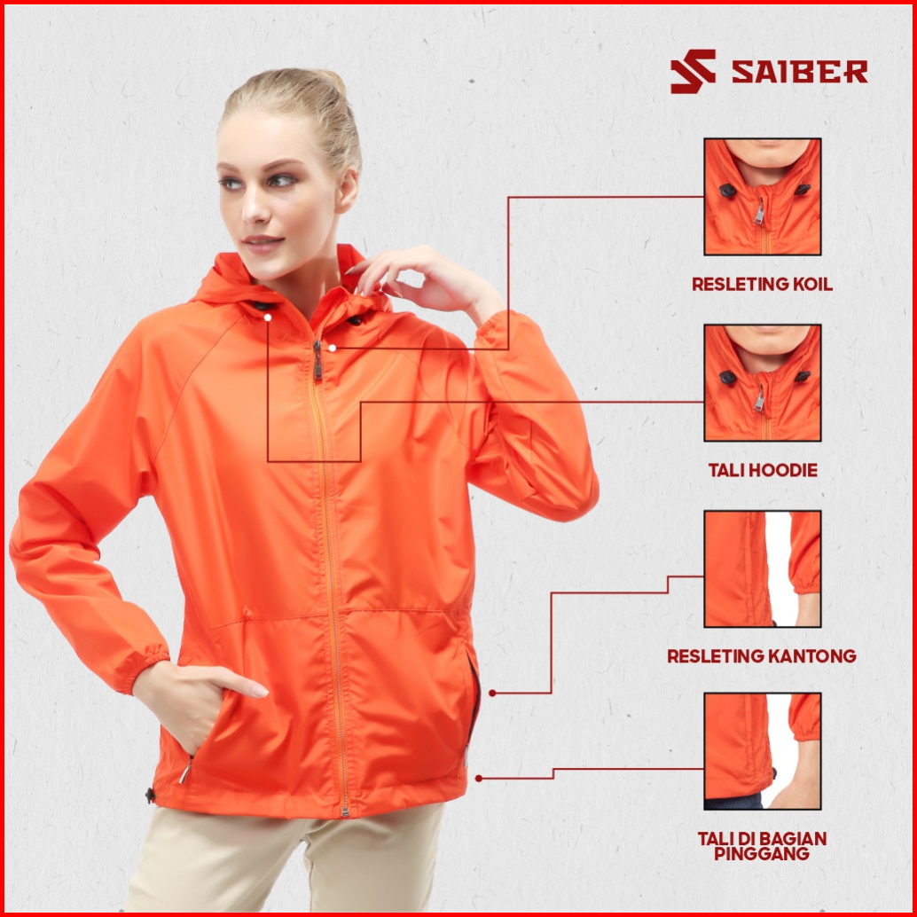 Saiber - Running Jacket Parasut Basic Windbreaker Uv Protection Foldable Quick Dry Warna Orange