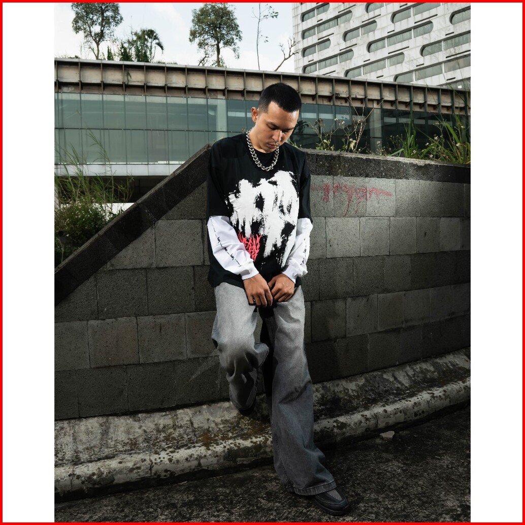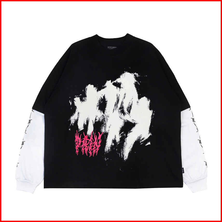 Accentambios Boxy Oversized Double Sleeve Tshirt Heart Speak Silence Black - Cotton Combed 20s