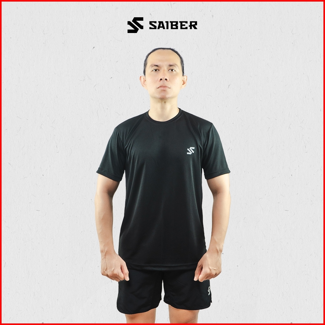 Saiber - Kaos Olahraga Dry Fit Basic Pria T-shirt Running Jogging Sport Bahan Elastis Lembut Tebal