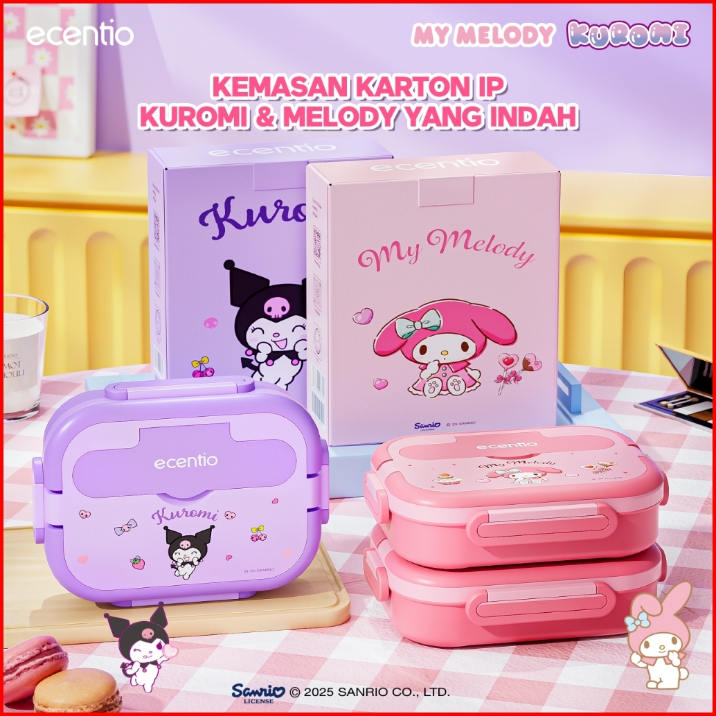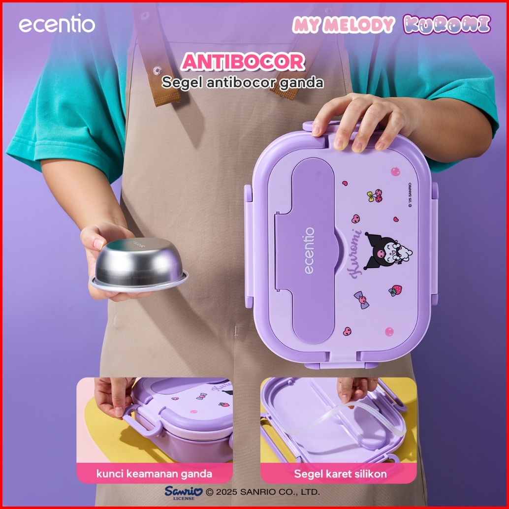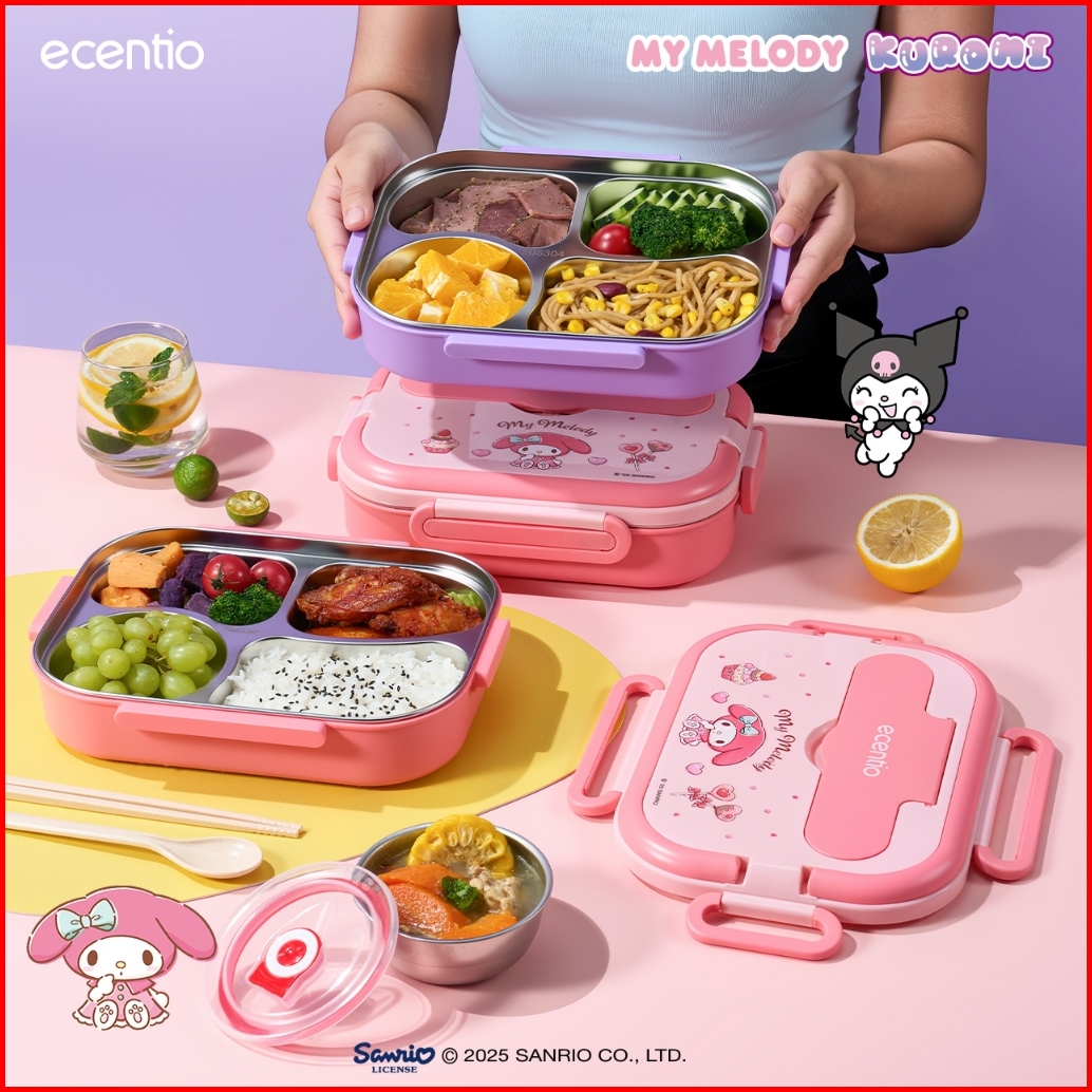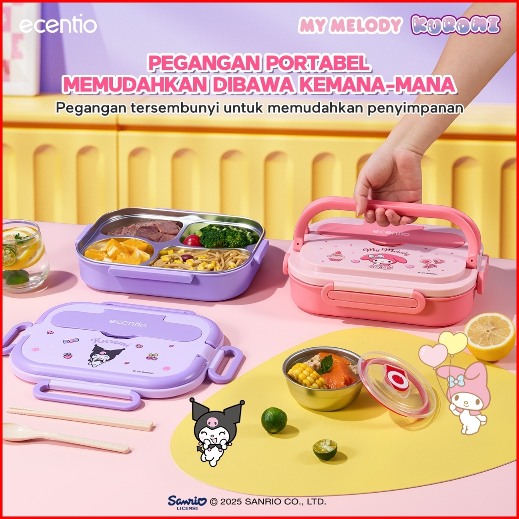 Kuromi My Melodyecentio Sanrio Edition Custom Kotak Makan 4 Sekat Stainless Steel 304 1000ml Tahan Panas Dan Anti Tumpah