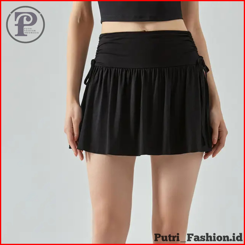 Rok Olahraga Wanita Skirt Sport Jogging Renang Sepeda Lari Zumba Tali Serut Di Samping Korean Style