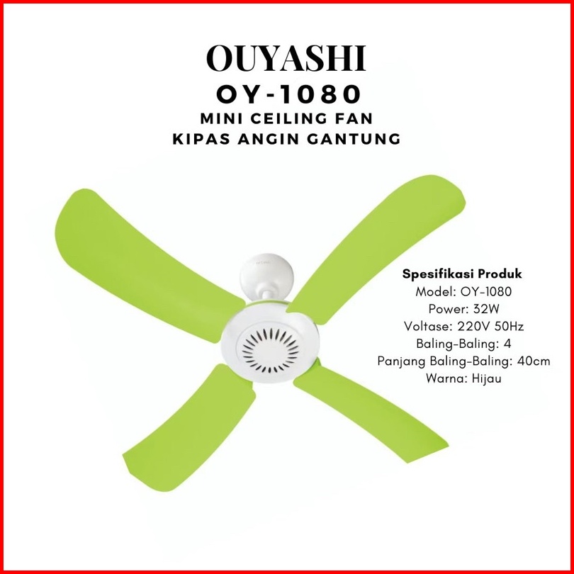 Kipas Angin Gantung Ouyashi Tipe Oy-1080 Warna Hijau Baling Baling 4 Real Pic