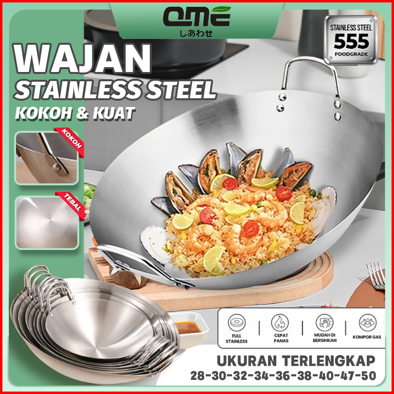 Qme Wajan Stainless 555 Dengan Pegangan Stainless Kuali Premium Premium Quality Anti Lengket