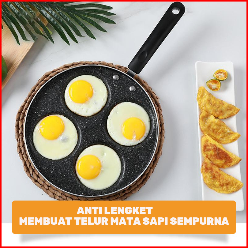Panci Cetakan Telur 4 Datar Cetakan Panci Wajan 4 Lubang Penggorengan Telor Pancake Pencetak 4 Lubang Multifungsi Panci