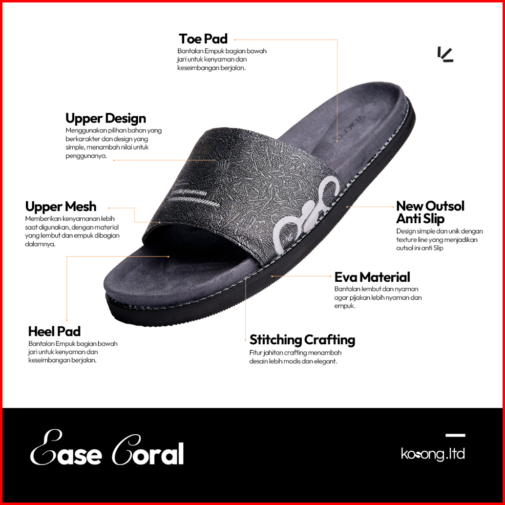 Kosong.ltd Sandal Slop Slide Pria - Wanita Ease Coral - Grey