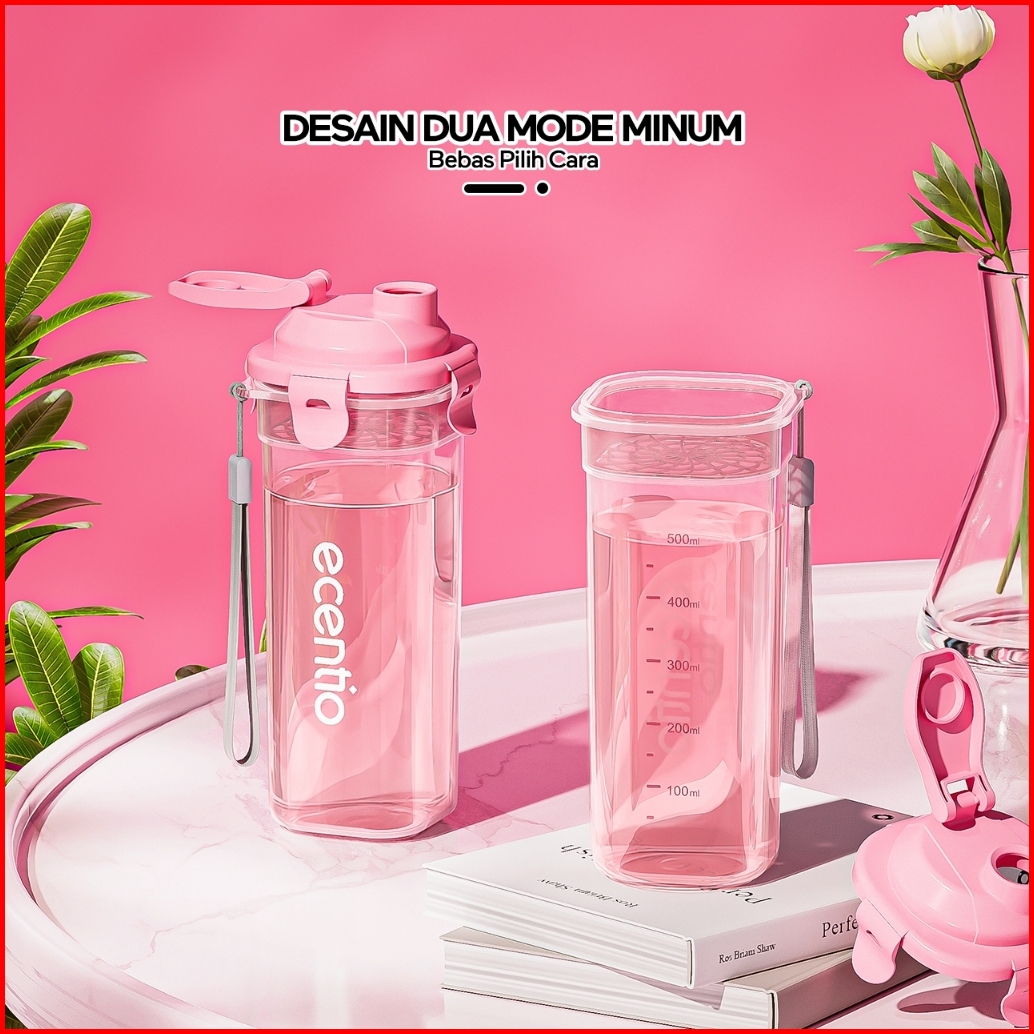 Ecentio Botol Minum Portable 500ml Anti Bocor Anti Tumpah Sport Olahraga Plastik Tempat Botol Air Tebal Bottle Water Bpa