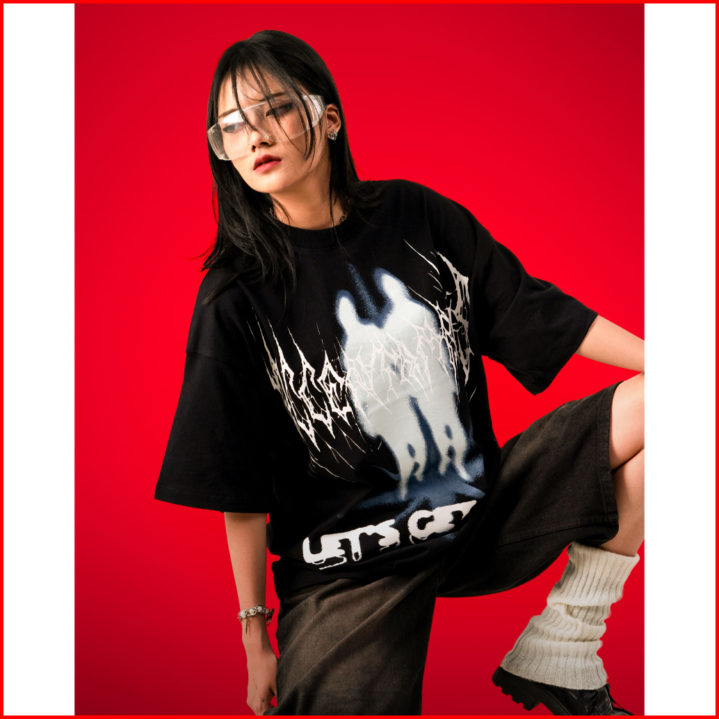 Accentambios Boxy Oversized T-shirt Lets Get Lost Black - Cotton Combed 20s