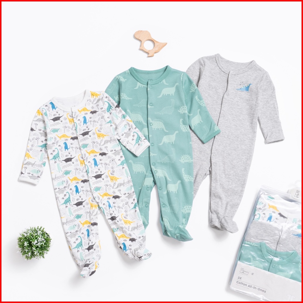 Dino Land Sleepsuit 3 In 1 - Memorylife Basic Series Setelan Bayi Piyama Bayi