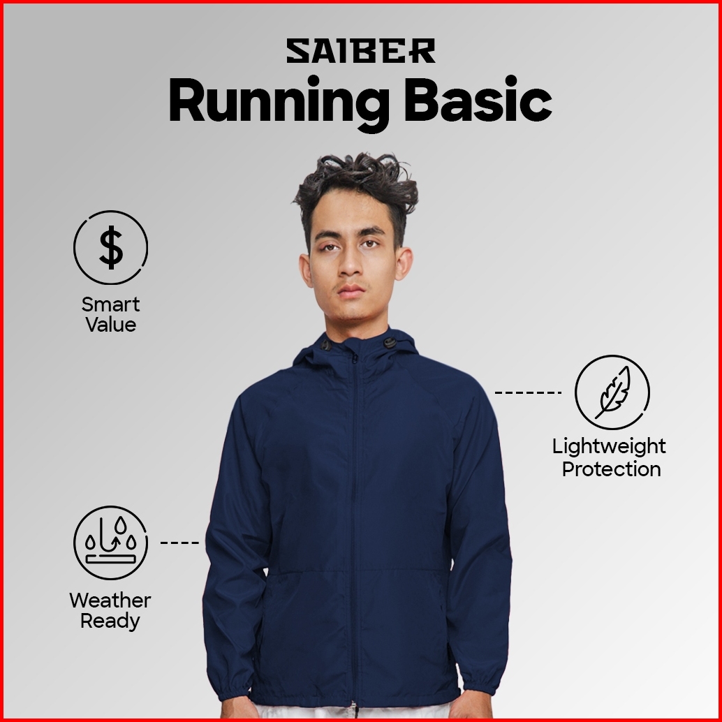 Saiber - Jaket Running Basic Windbreaker Uv Protection Quick Dry Foldable - Navy