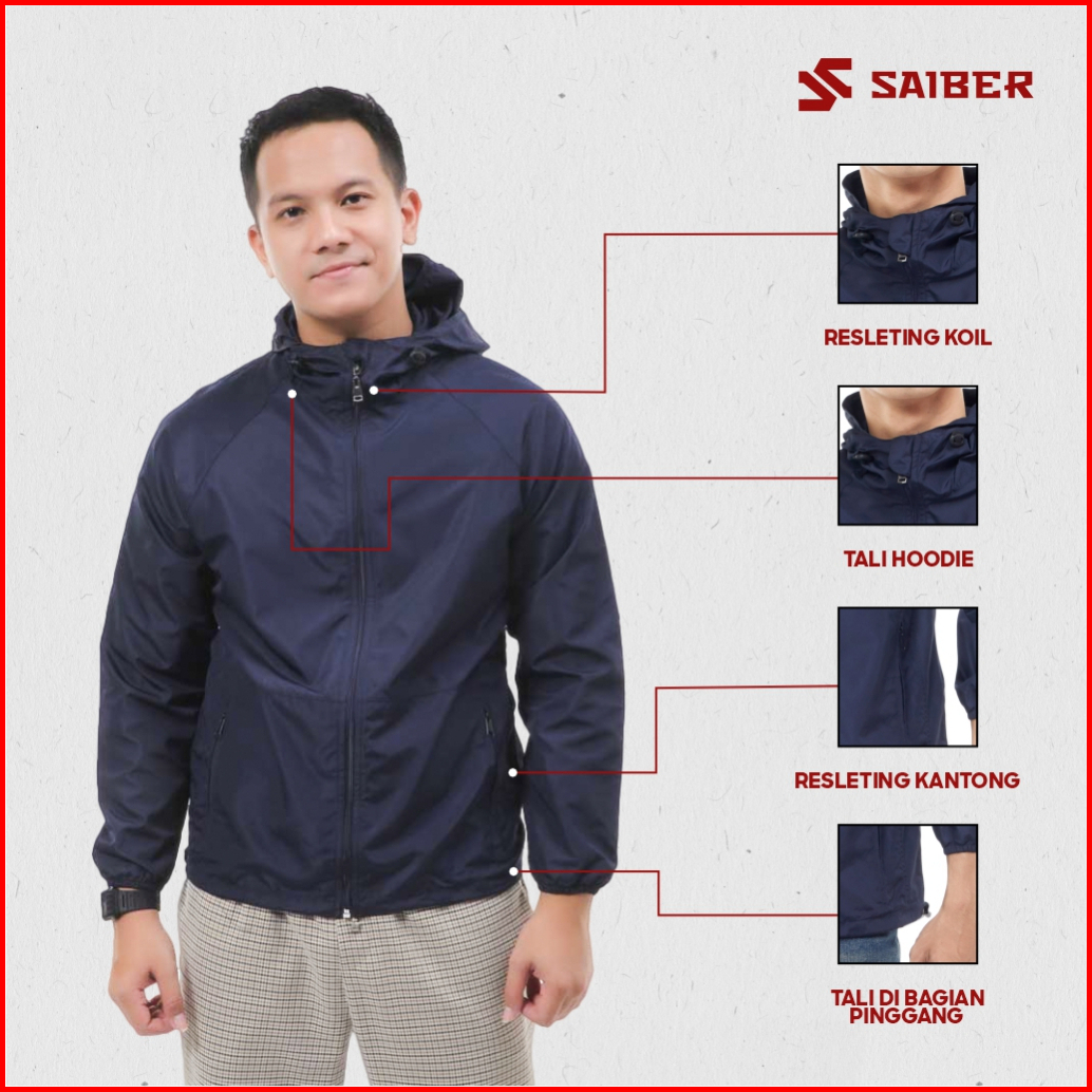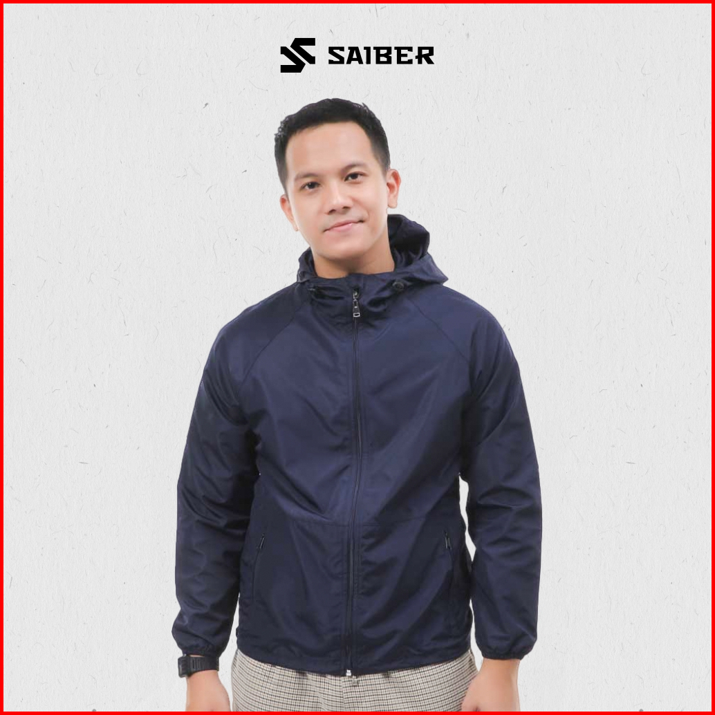 Saiber - Running Jacket Basic Windbreaker Uv Protection Foldable Quick Dry Warna Navy