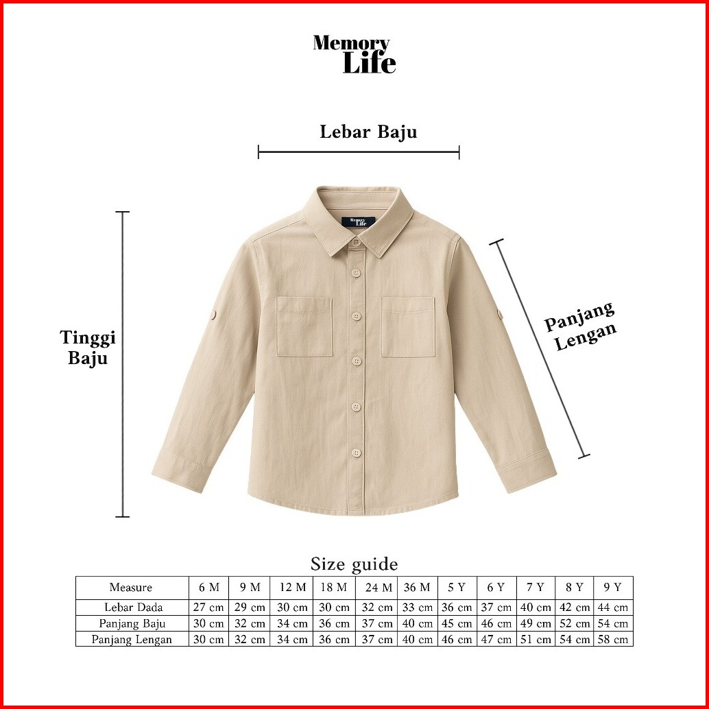 Memorylife - Buddy Shirt Kemeja Premium Anak-anak Umur 6 Bulan - 9 Tahun
