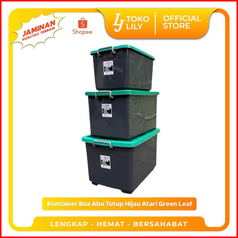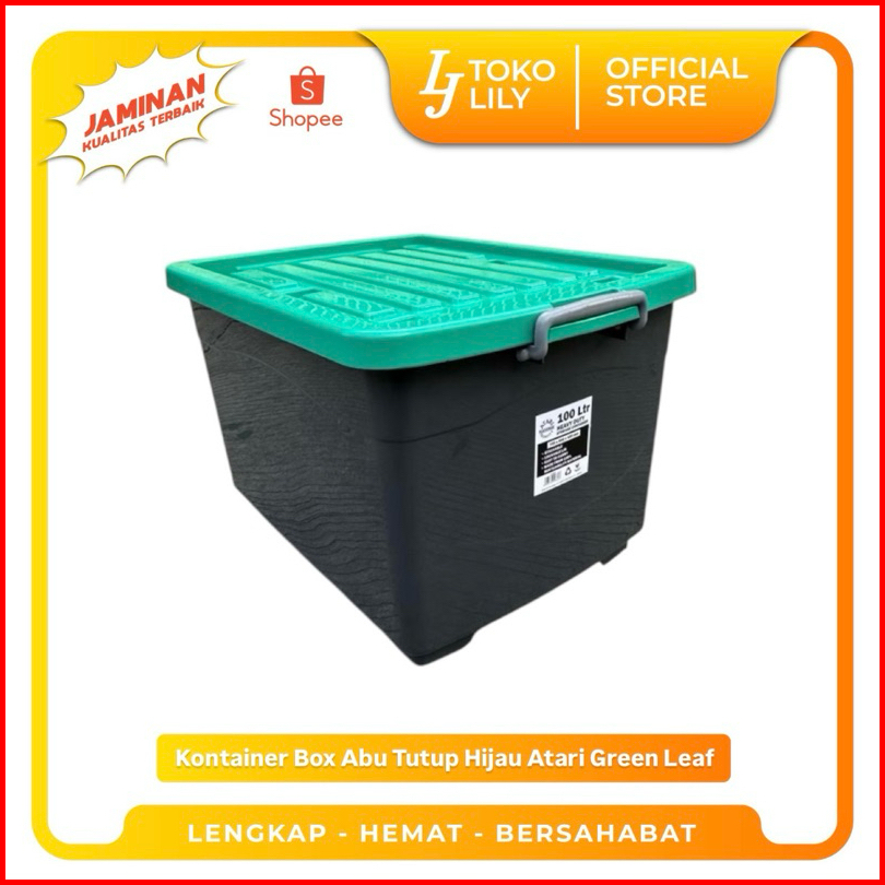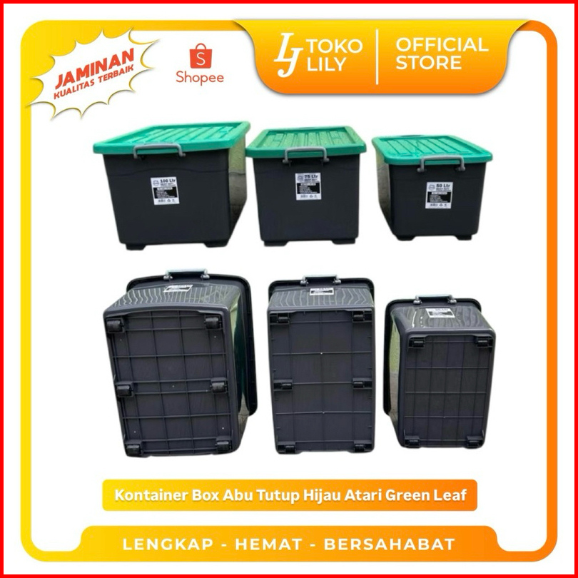 Kontainer Box Abu Hitam Tutup Hijau Beroda Atari Heavy Duty 50 75 100l