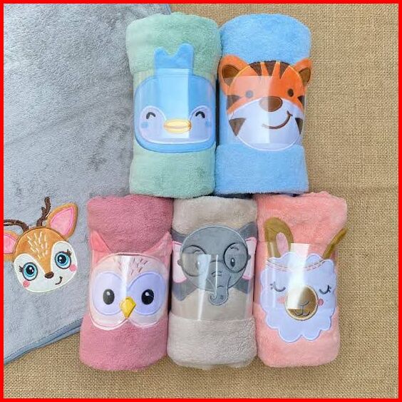 Handuk Bayi Anak Balita Bahan Microfiber Bordir Animal 50 X 100 Cm