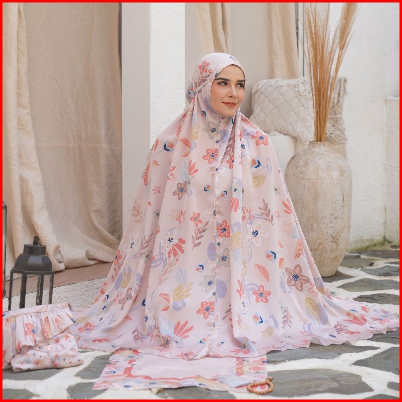 Veselka Alana Peach Sorbet Mukena Dewasa Motif Printing Prayer Set Hampers Mahar Hantaran Seserahan Pernikahan Premium