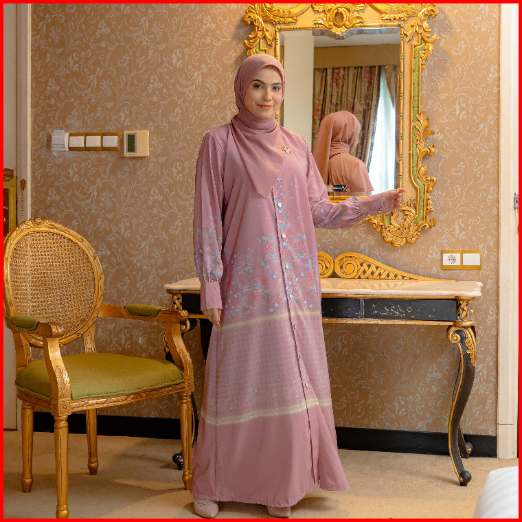 Veselka Royal Dress Gamis Abaya Gaun Wanita Hijab Scarves Segiempat Motif Printing Bunga Cantik Premium Long Dress Lebar