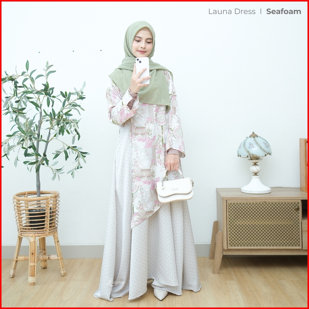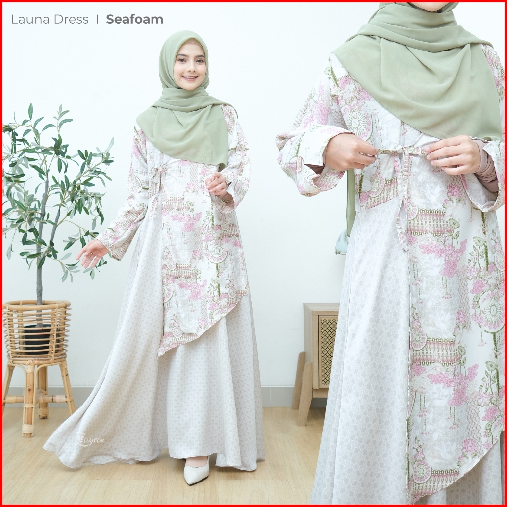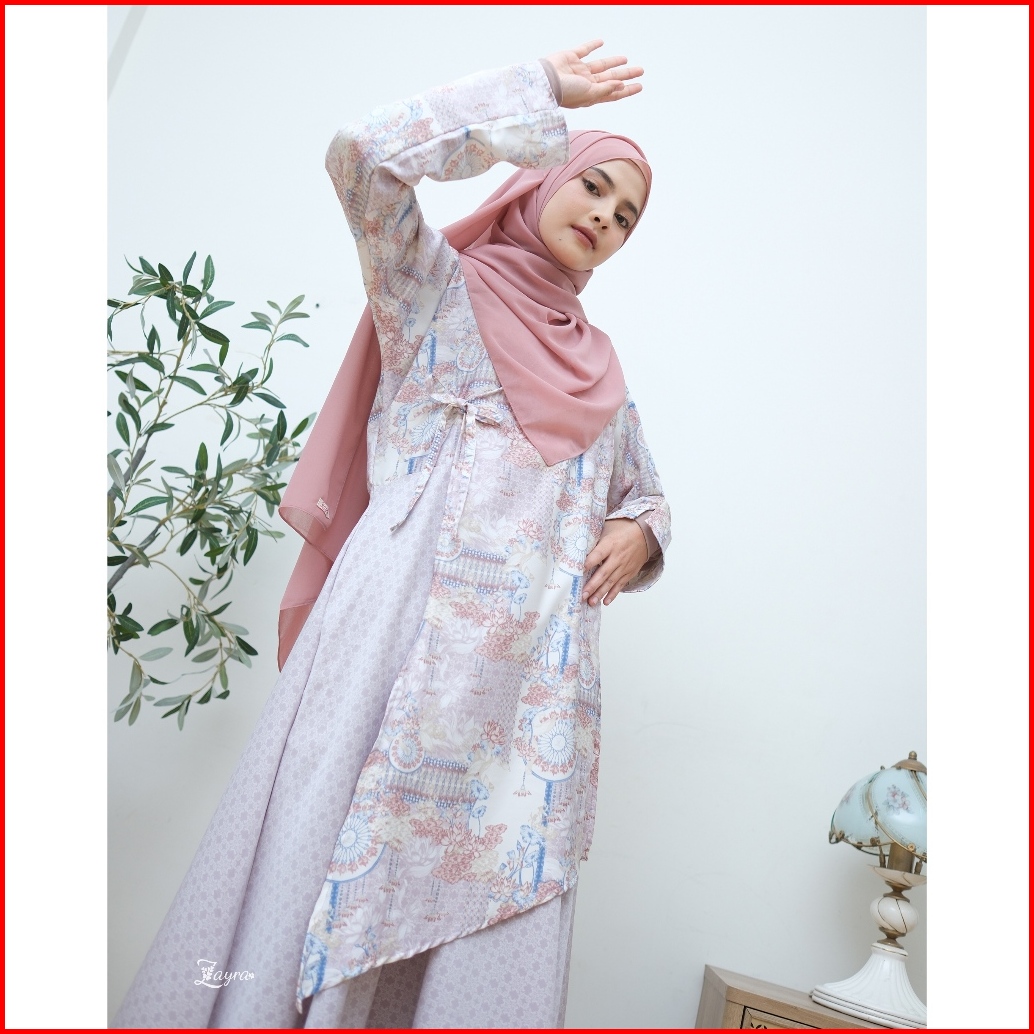 Zayra Hijab Launa Dress Gamis Wanita Ukhti Set Hijab Daily Syari Simpel Premium Lebaran Jumbo Mewah Elegan Terbaru 2025