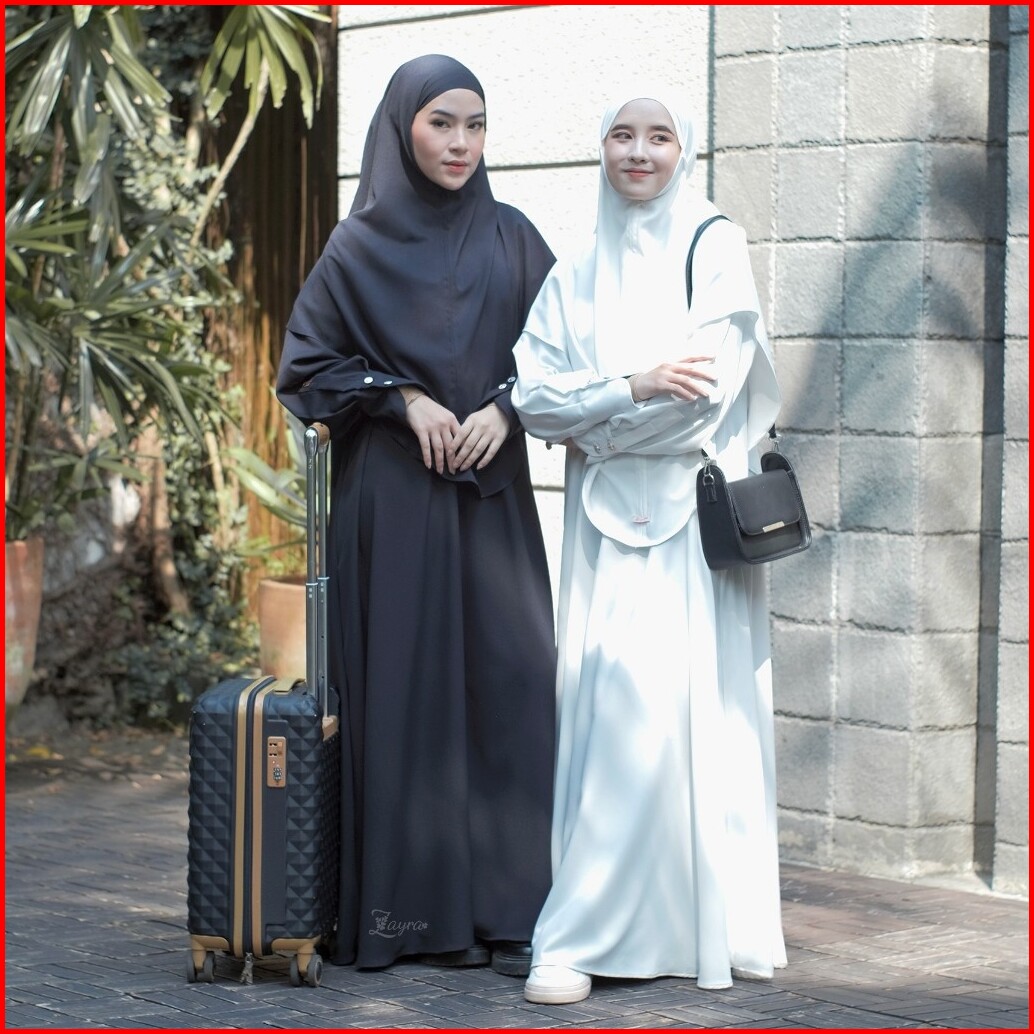 Zayra Hijab Jenna Set Dress Gamis Abaya Umroh Dan Haji Wanita Premium Set Jilbab Hijab French Khimar Umroh Outfit Umroh