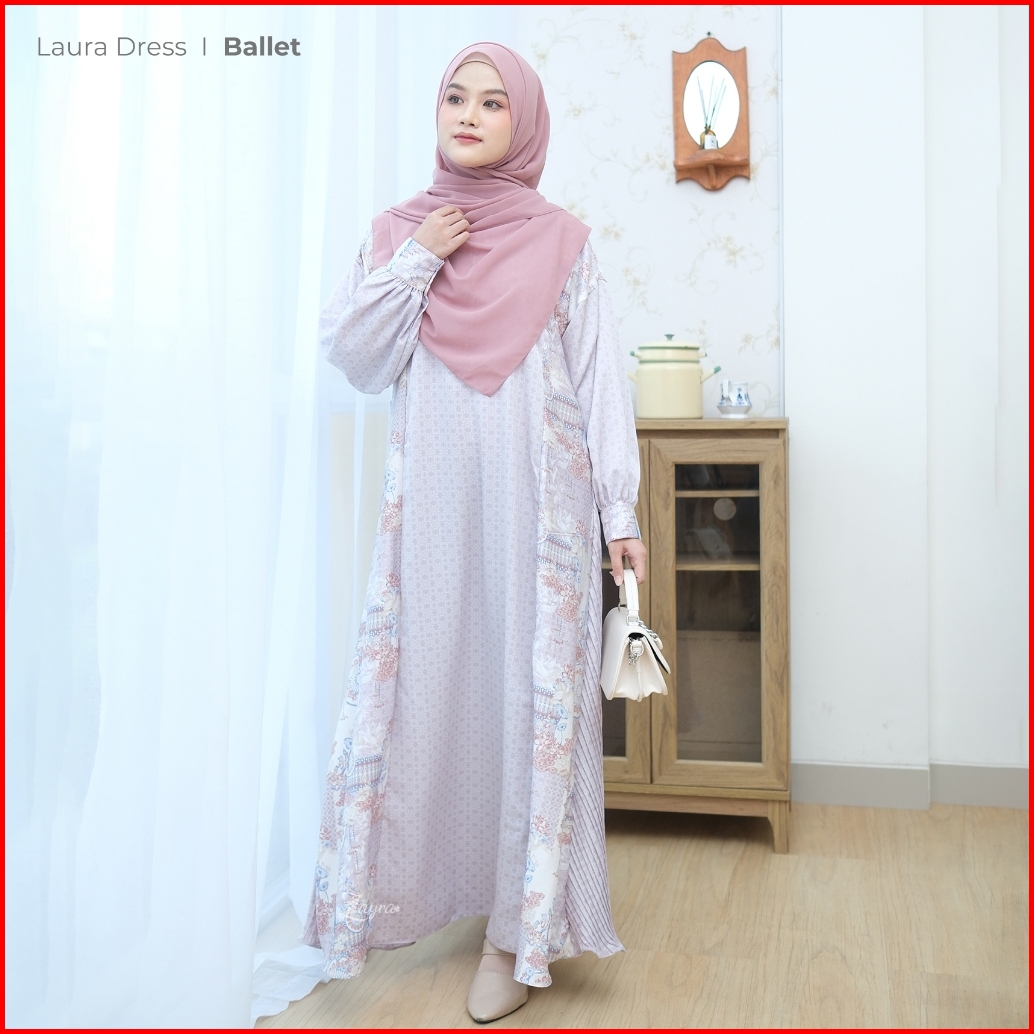 Zayra Hijab Laura Dress Gamis Wanita Ukhti Set Hijab Daily Syari Simpel Premium Lebaran Jumbo Mewah Elegan Terbaru 2025