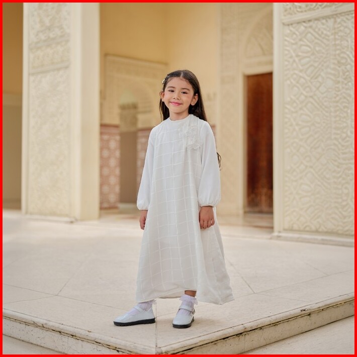 Zm Zaskia Mecca - Finian Gamis Anak Dress- White Series - Binar Samudra