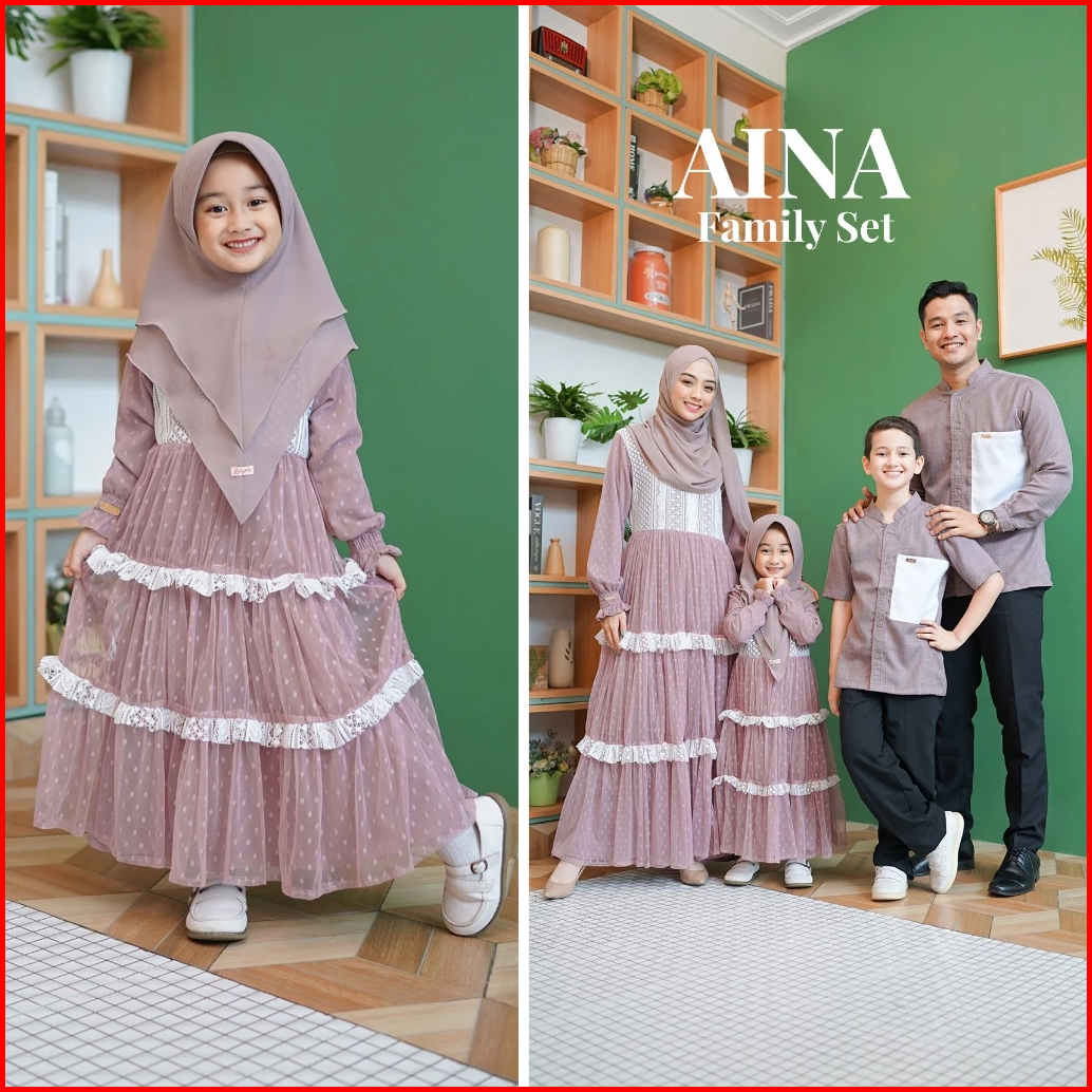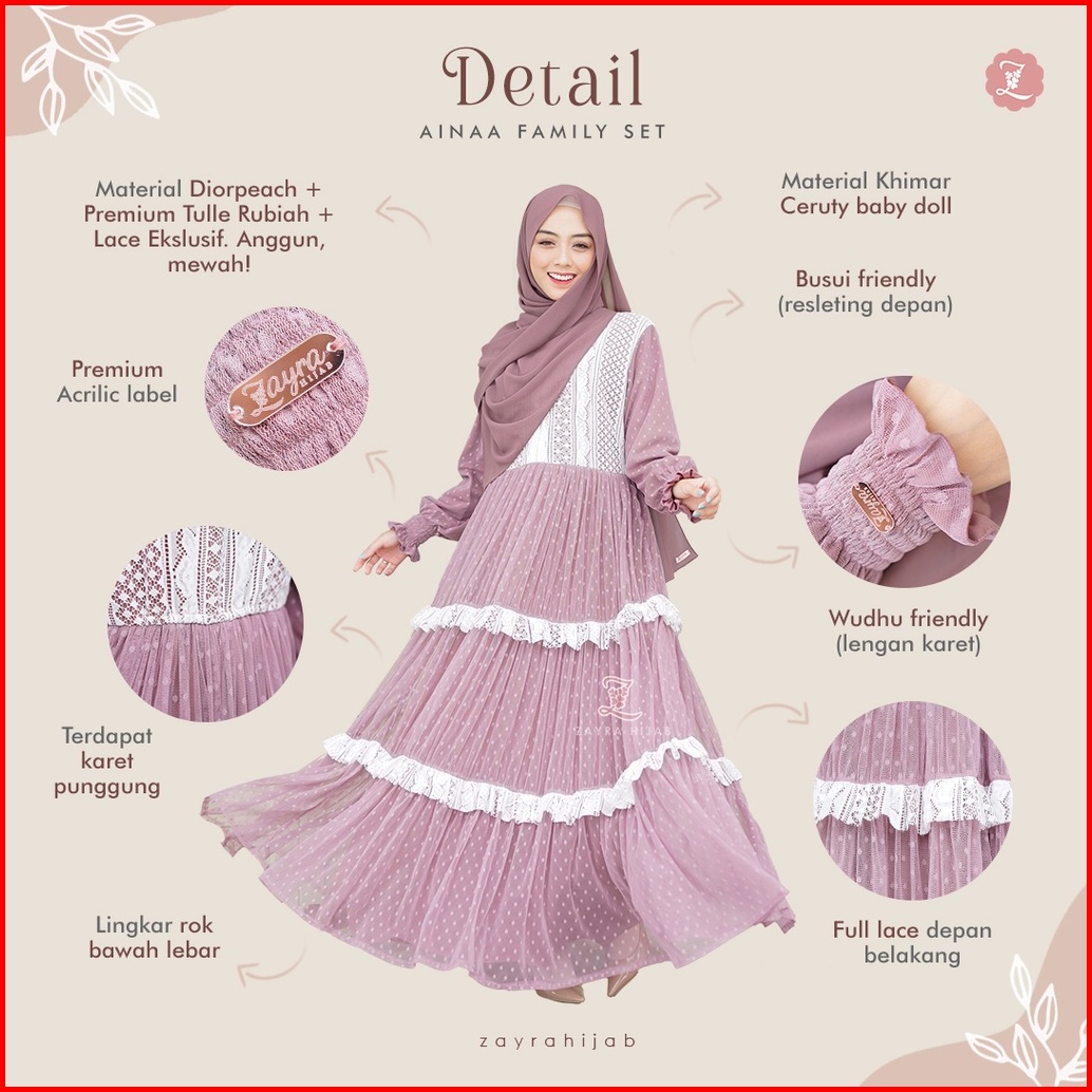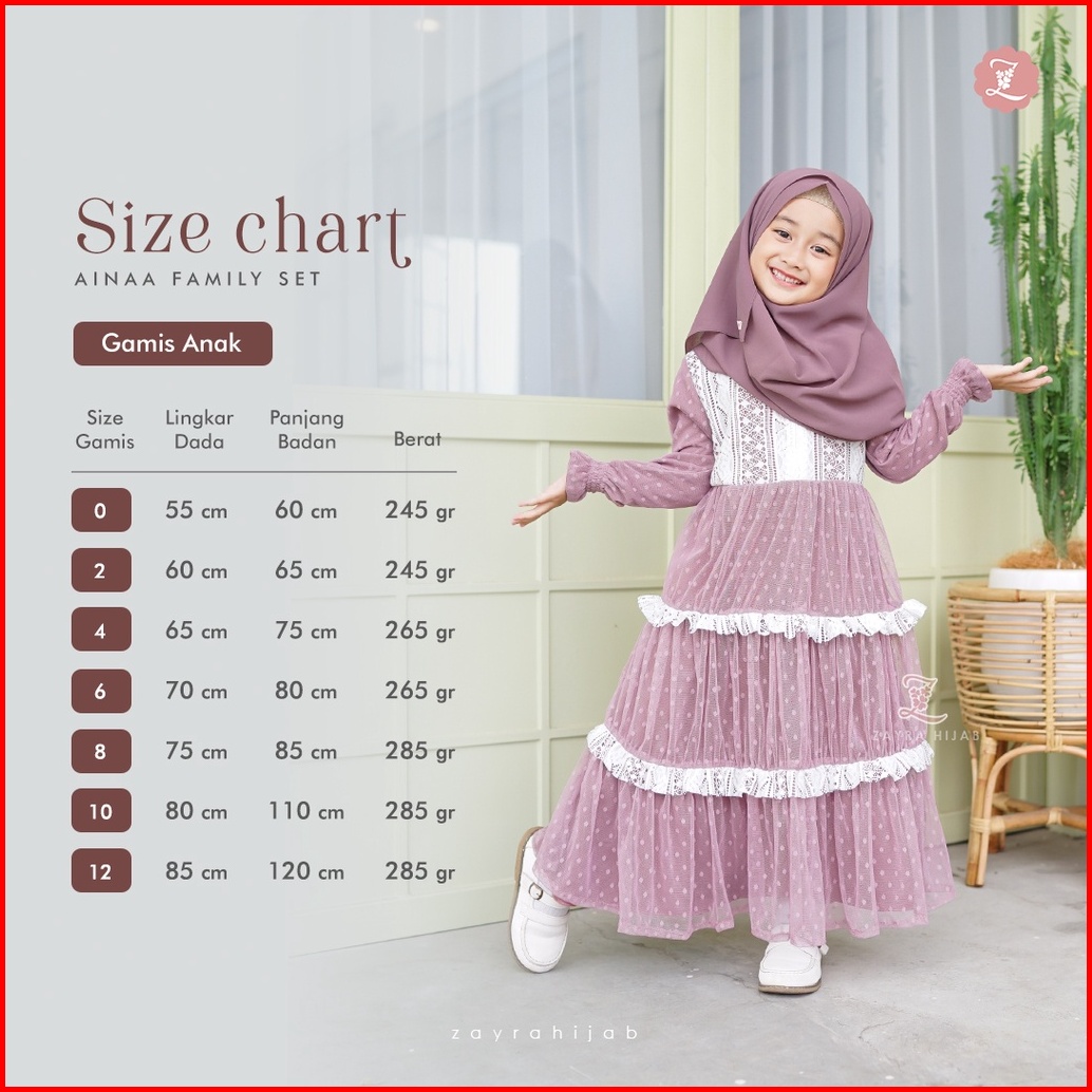 Zayra Hijab Gamis Anak Ainaa Family Set Gamis Anak Perempuan Set Hijab 0-12 Tahun Terbaru 2025