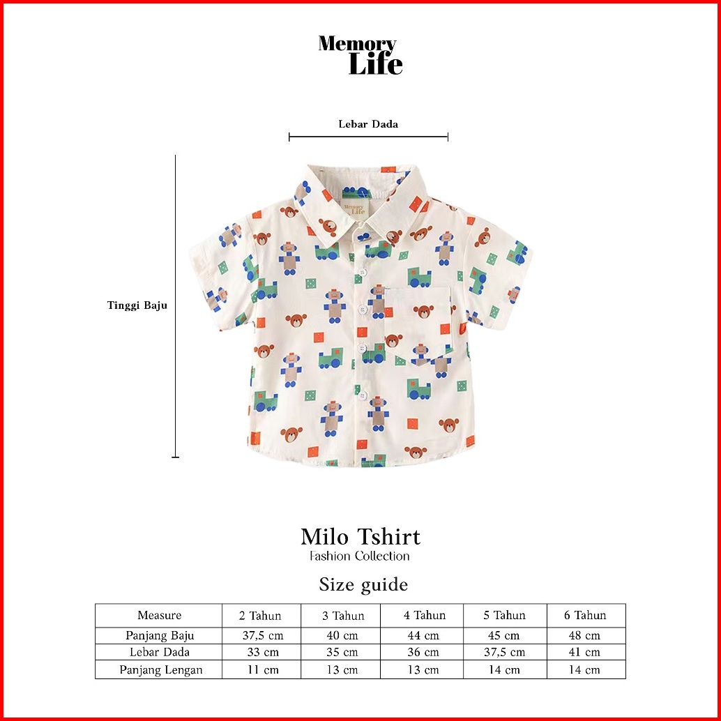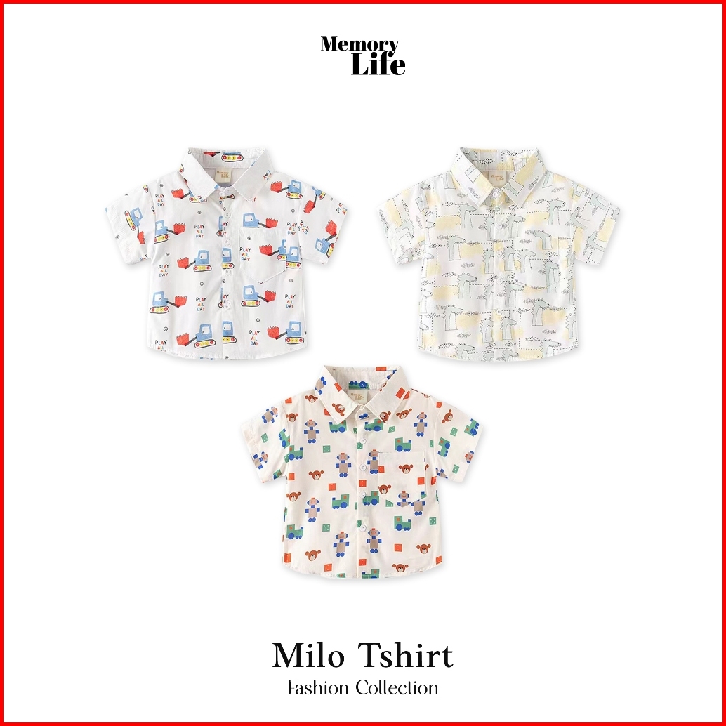 Memorylife - Milo Shirt Kaos Kemeja Baju Lengan Pendek Anak Laki-laki Umur 2 Tahun - 6 Tahun