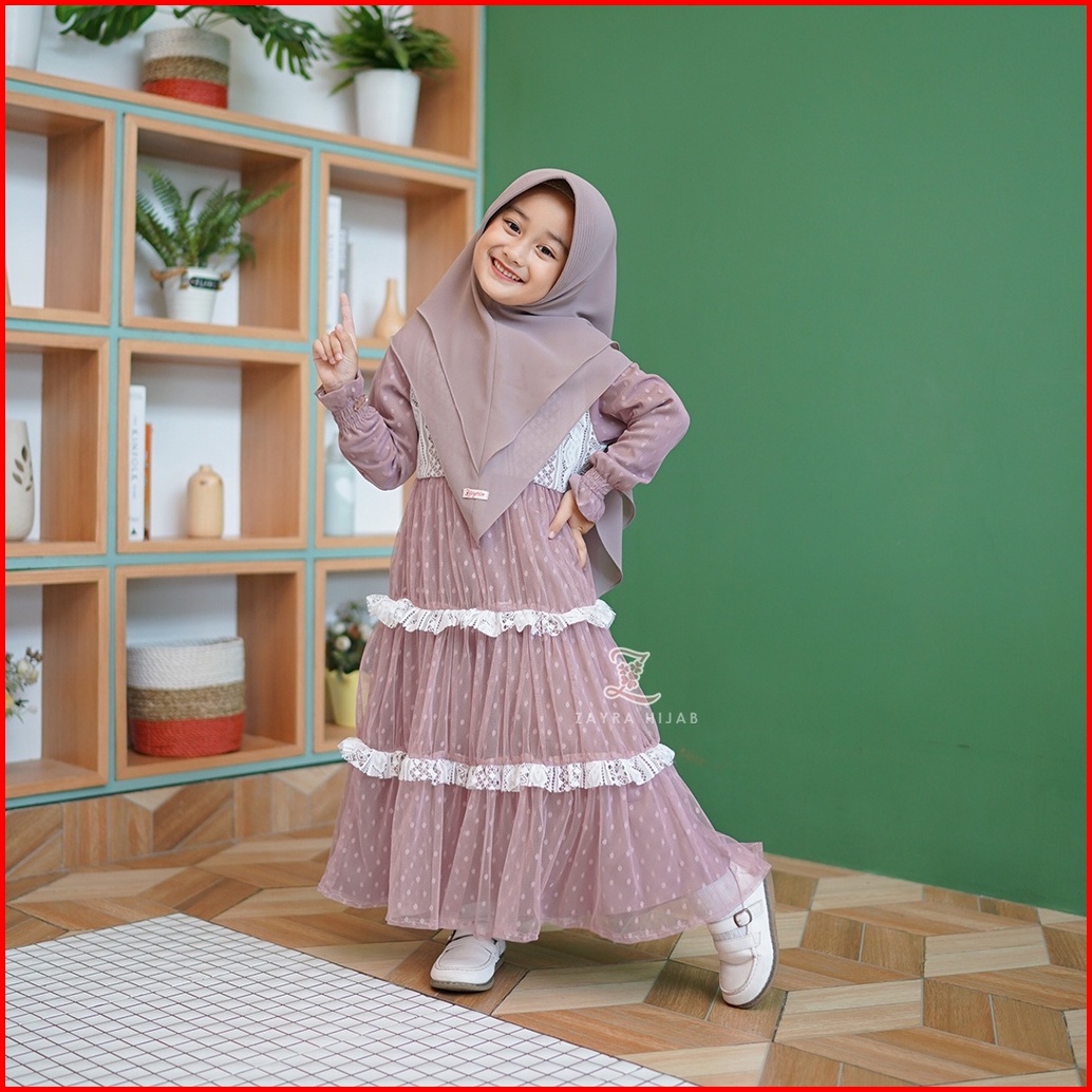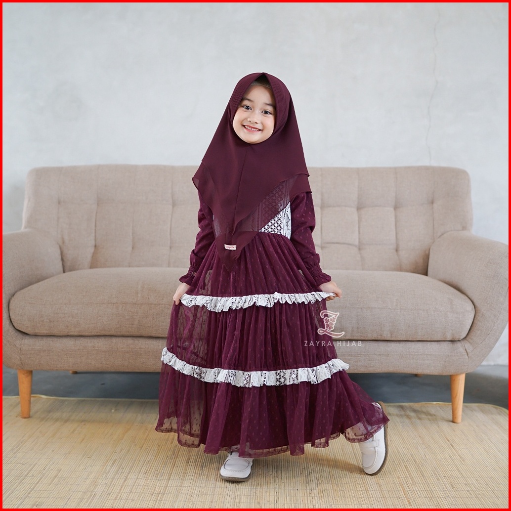 Zayra Hijab Khimar Anak Ainaa Khimar Syari Ceruti 2 Layer Babydoll Premium