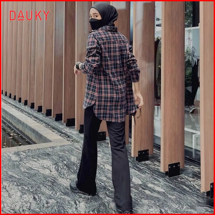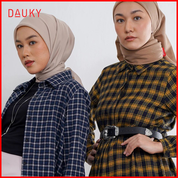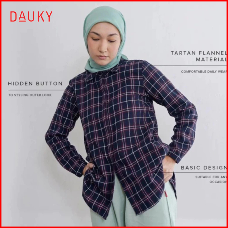 Dauky Atasan Tunik Kemeja Flanel Wanita M Tunic Basic Tartan