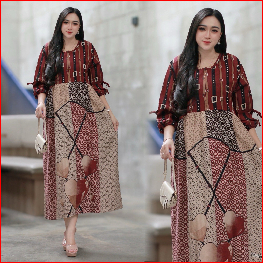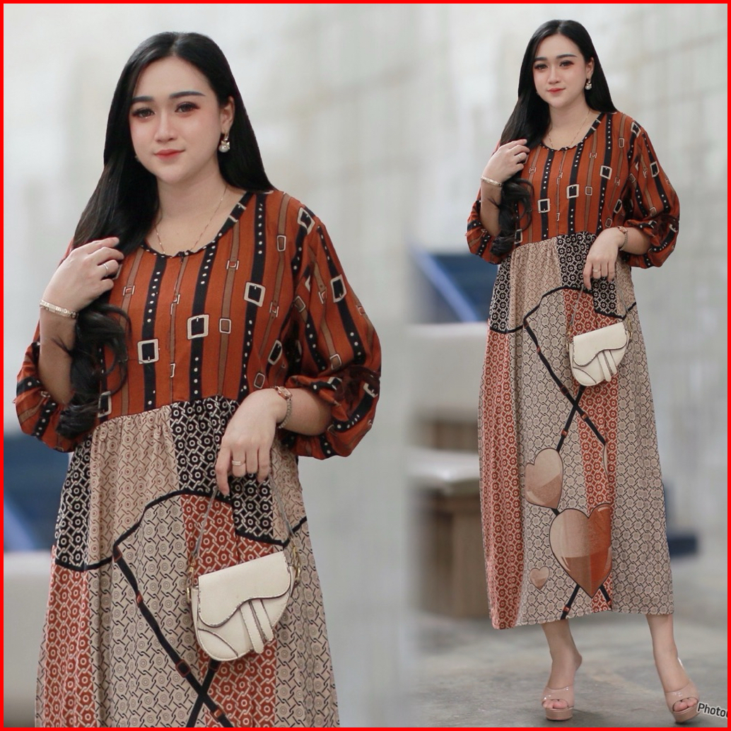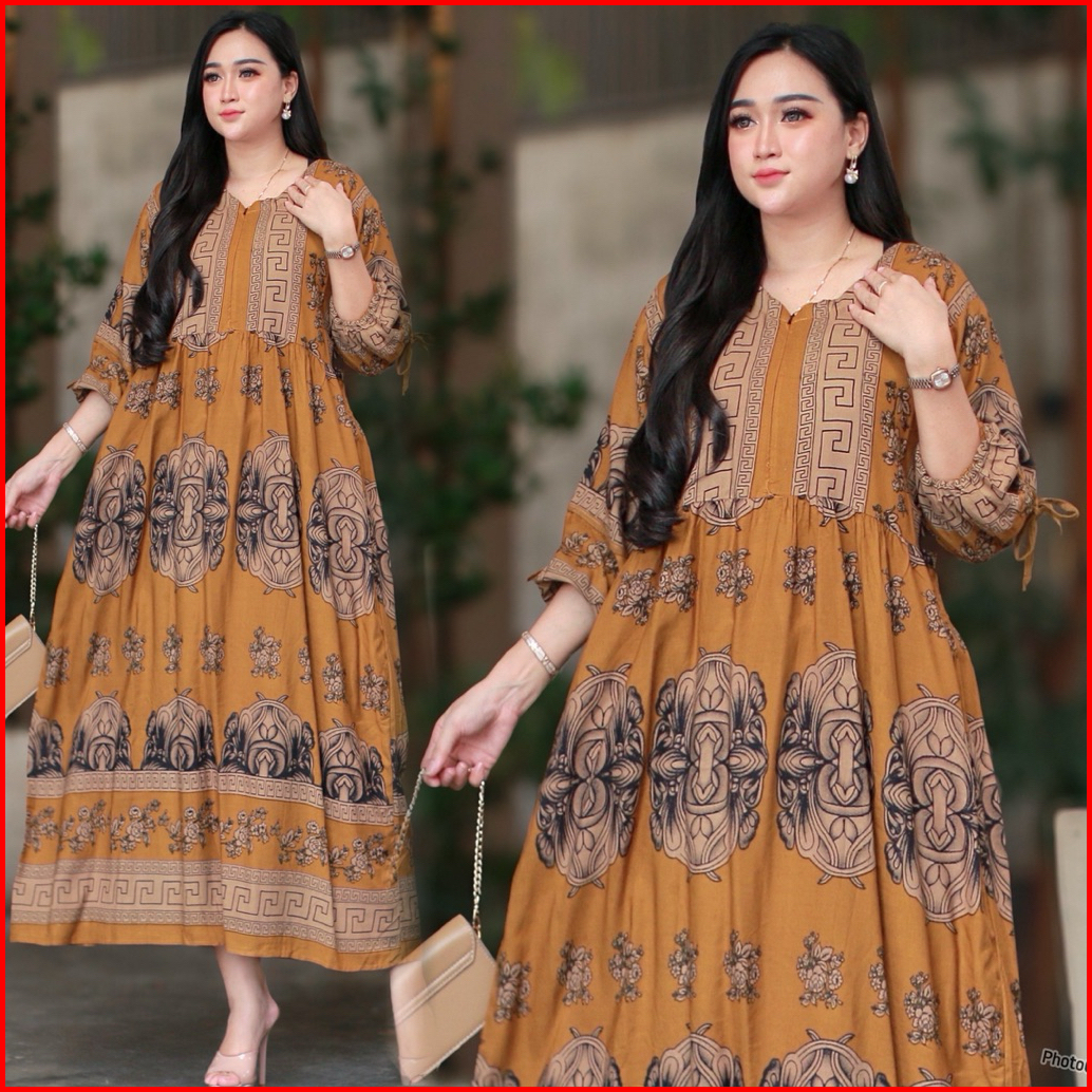 Midi Dress Wanita Rayon Gamis Rayon Adem Bumil Busui Friendly Jumbo New