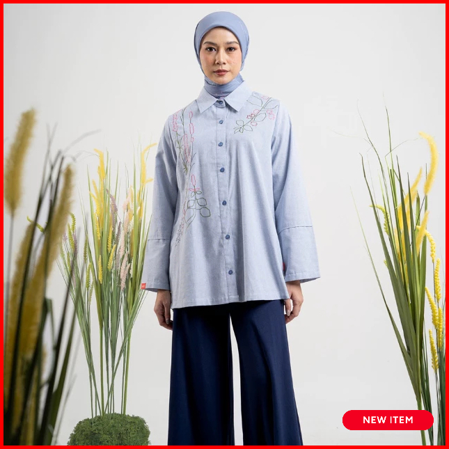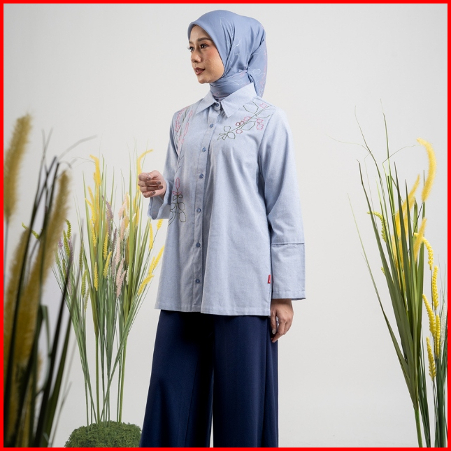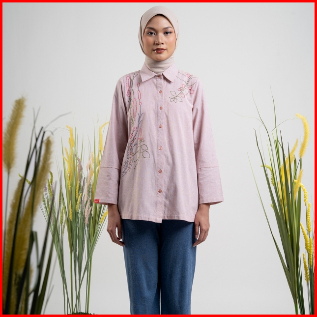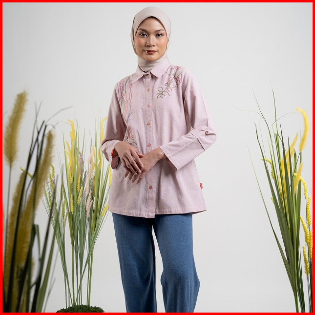 Dauky Atasan Wanita Blus Tunik Kemeja Lengan Panjang M Tunic Wild Flower