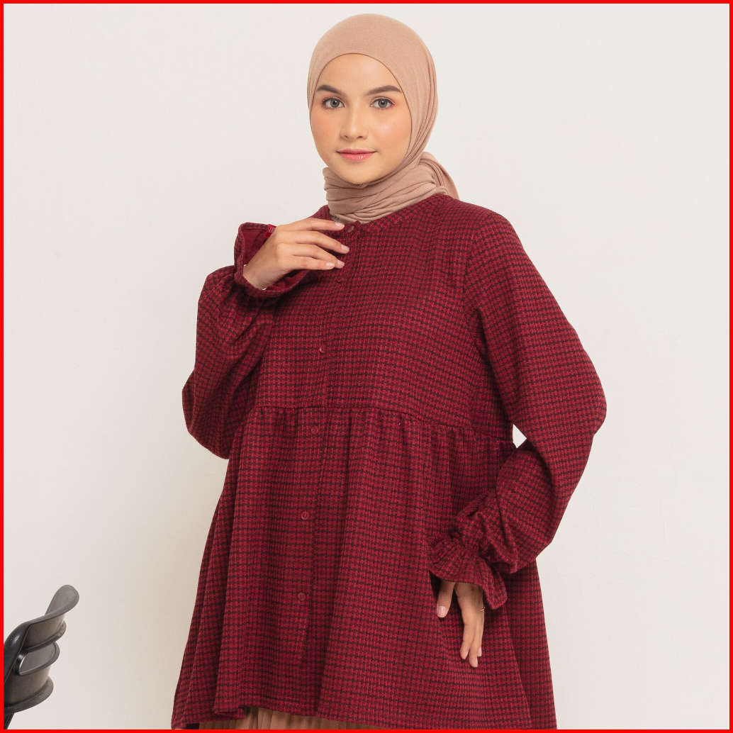 Tunik Atasan Wanita Dauky M Tunic Knit Tweed Ruffles