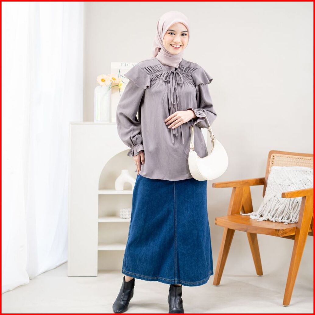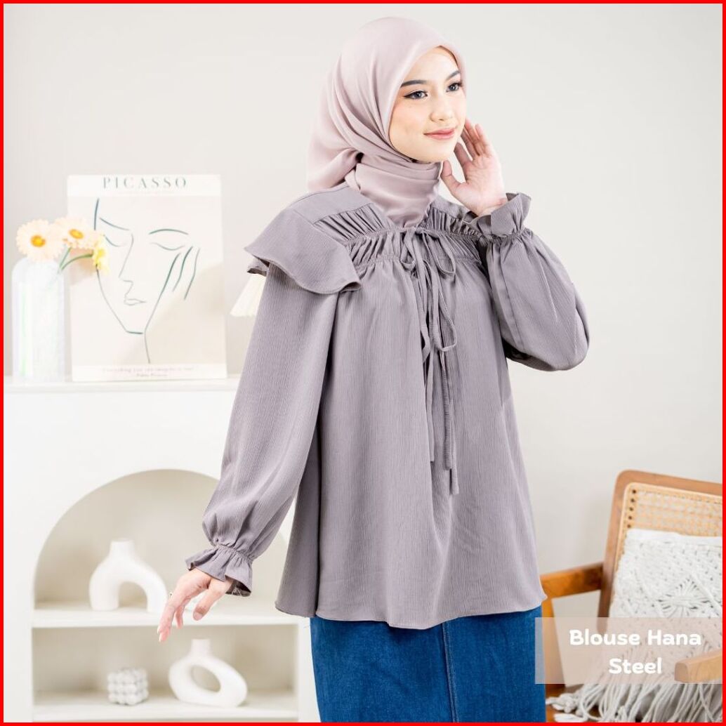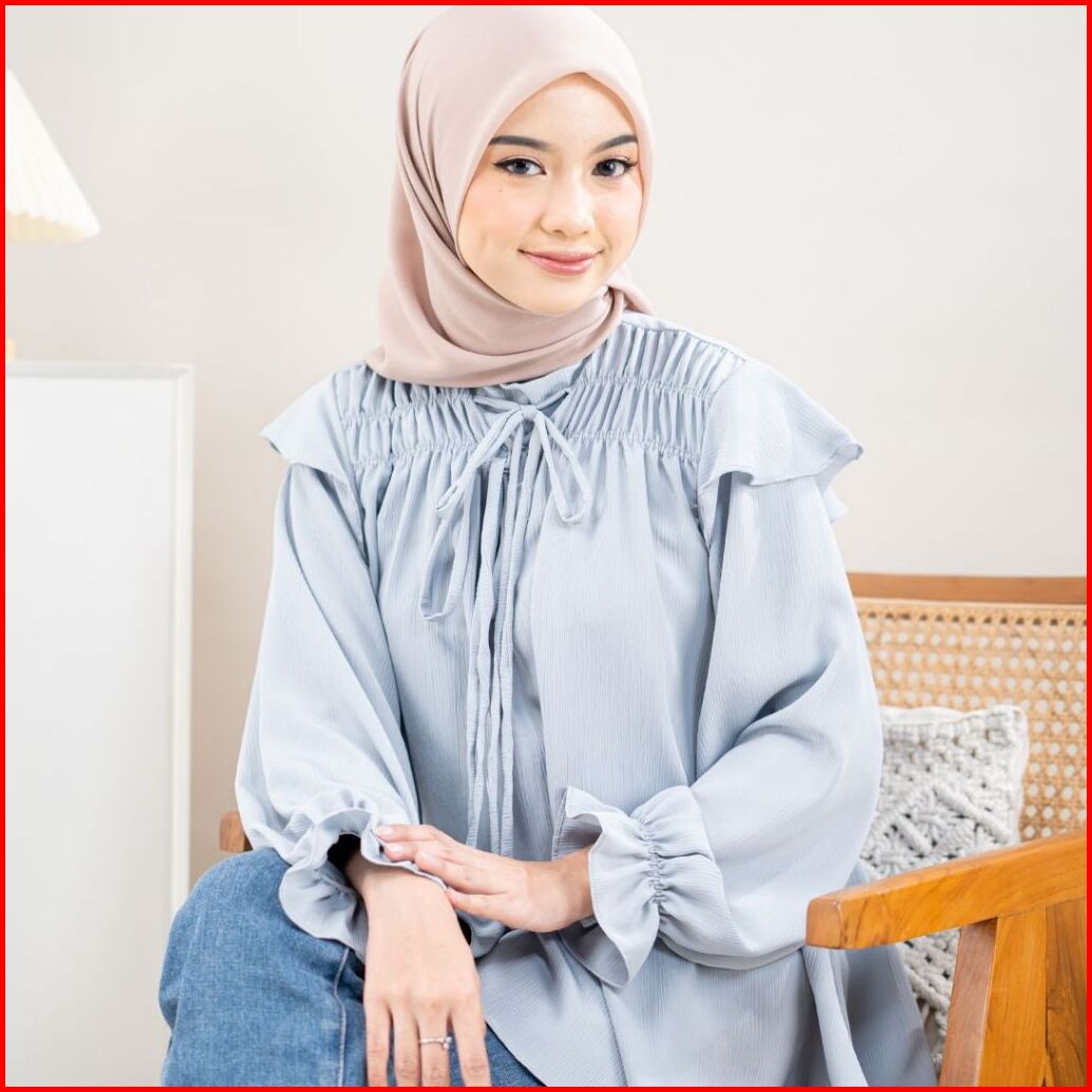 Zianisa X Bianca Kartika - Blouse Atasan Wanita Ruffle Kerut Snowsheer Hana Series