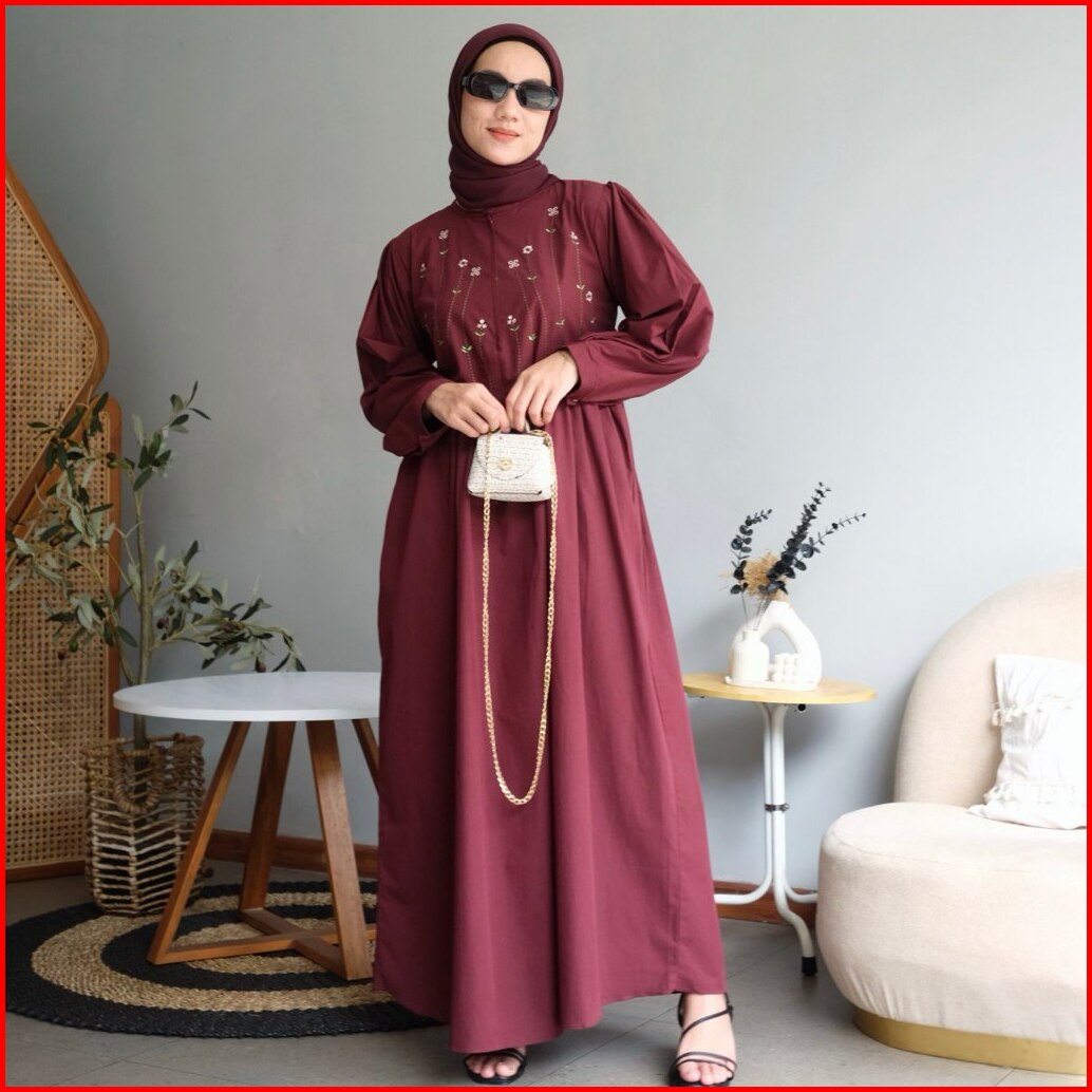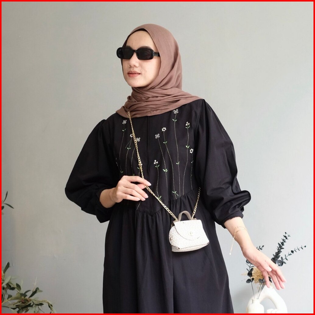 Proudyhijab - Heejin Dress Polos Variasi Bordir Bahan Katun Poplin Premium Dress Wanita Busui Friendly Resleting Depan