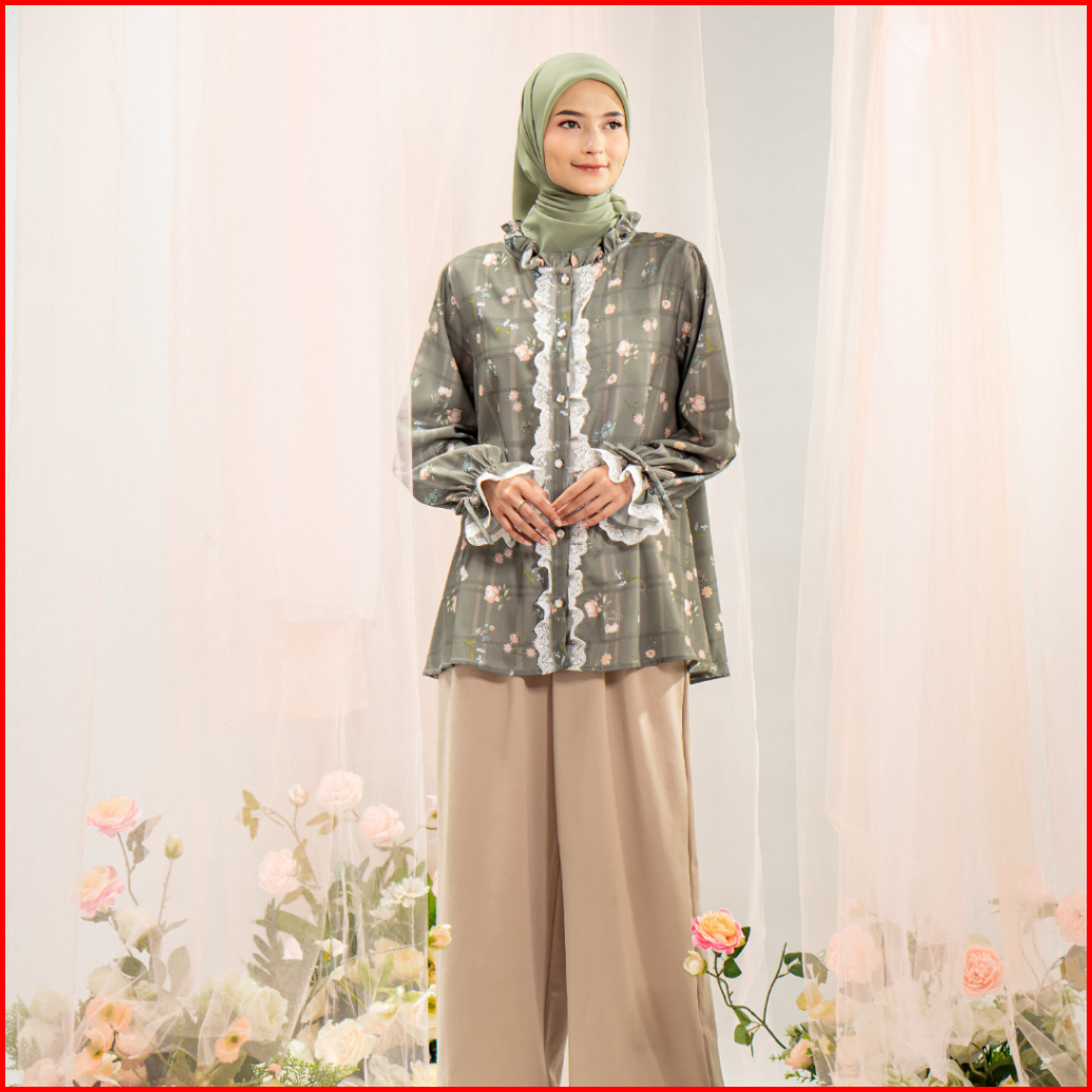 Zianisa - Blouse Renda Ruffle Rosemary Series Atasan Wanita Full Kancing Lengan Karet