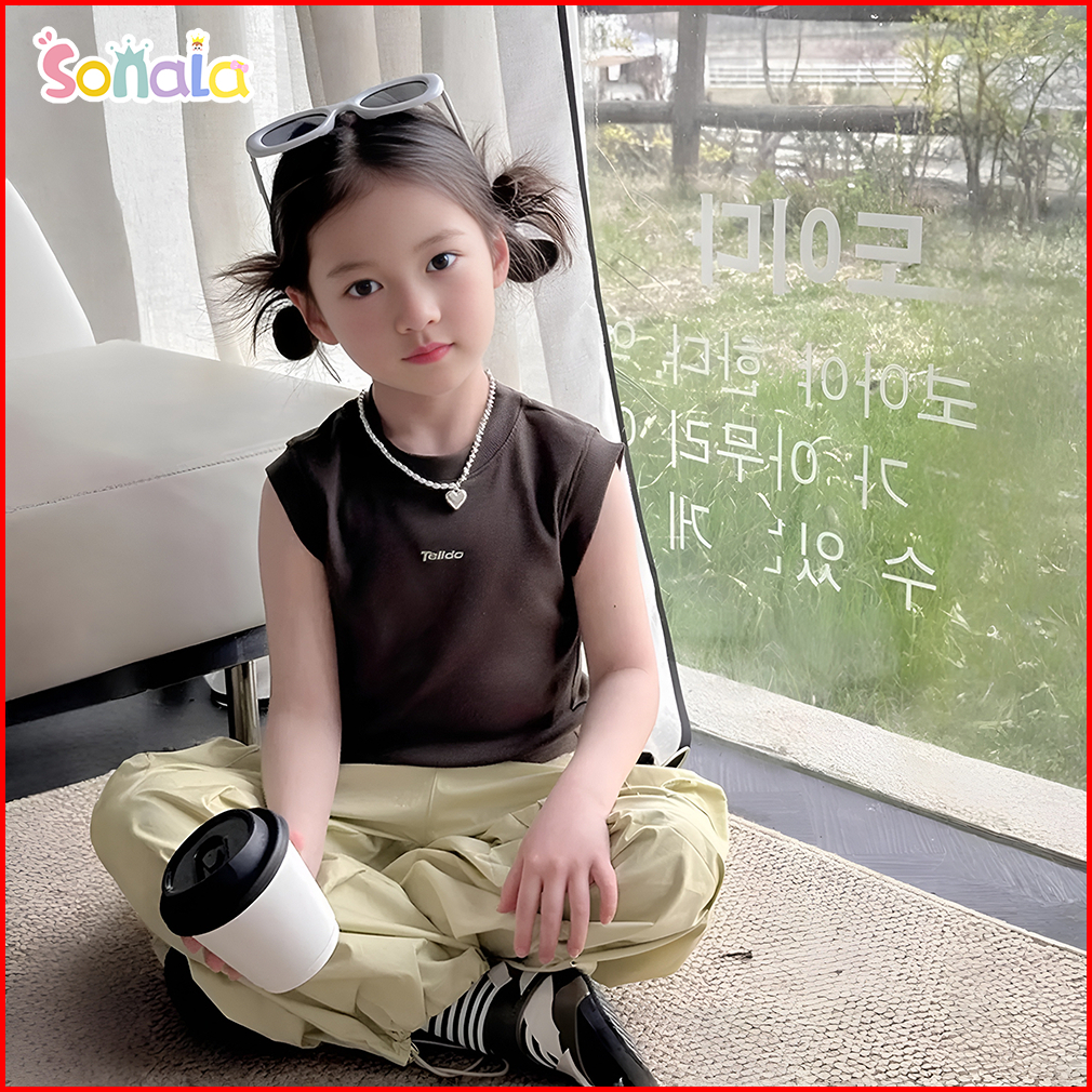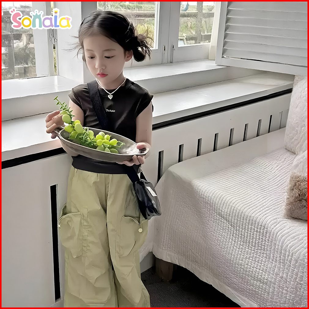 Setelan Celana Cargo Baju Anak Perempuan 2-10 Tahun Atasan Rompi Tanpa Lengan Dan Kulot Cargo One Set