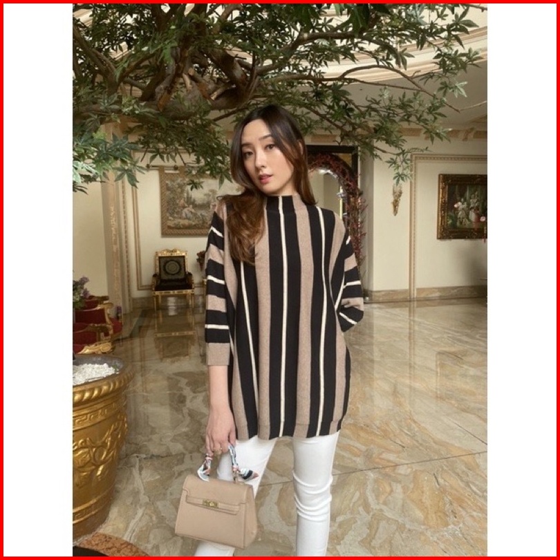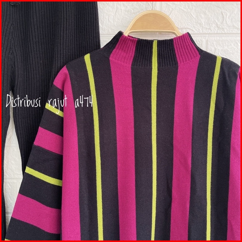 Onset Atasan Erina Oversize Setelan Kulot Rajut Garis-garis