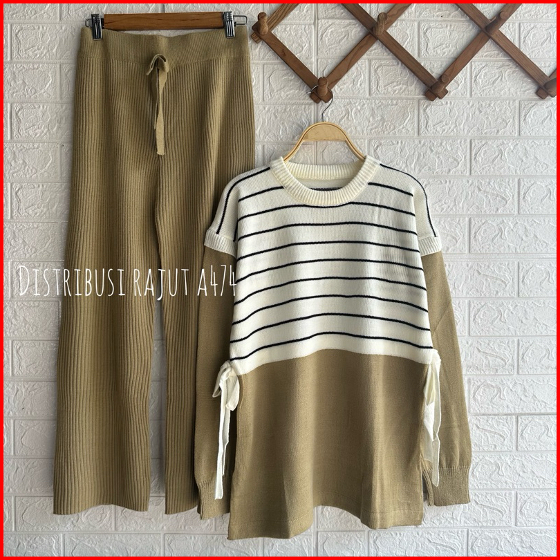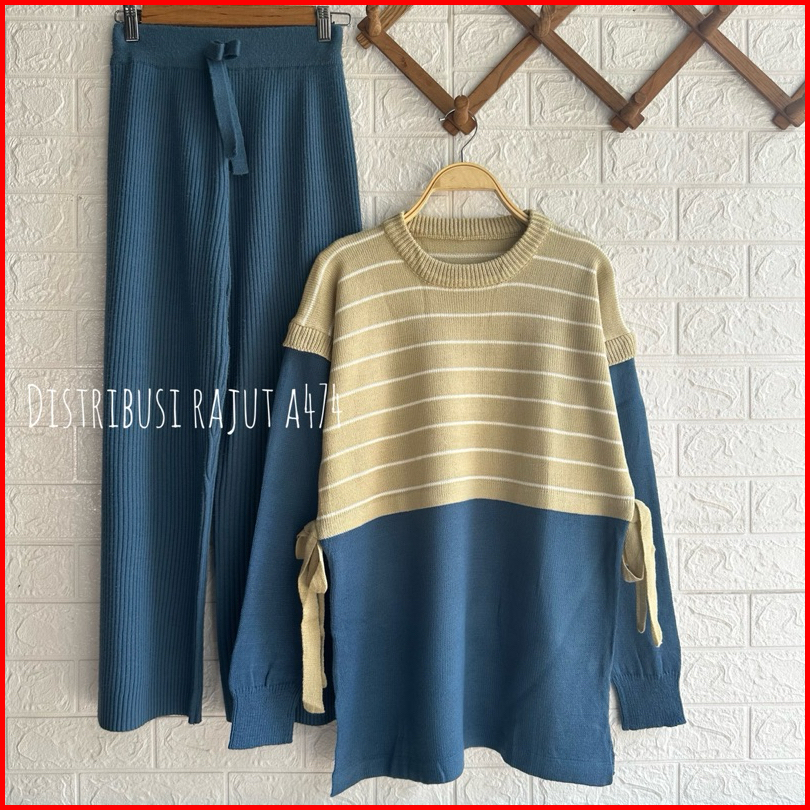 Oneset Brova Blouse Setelan Celana Kulot Rajut Wanita