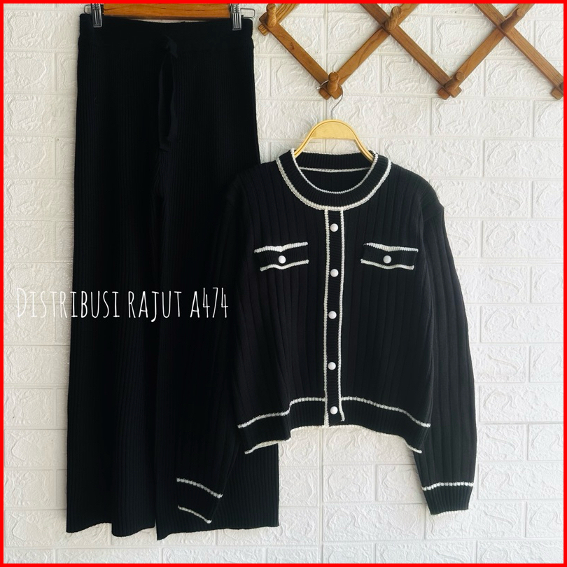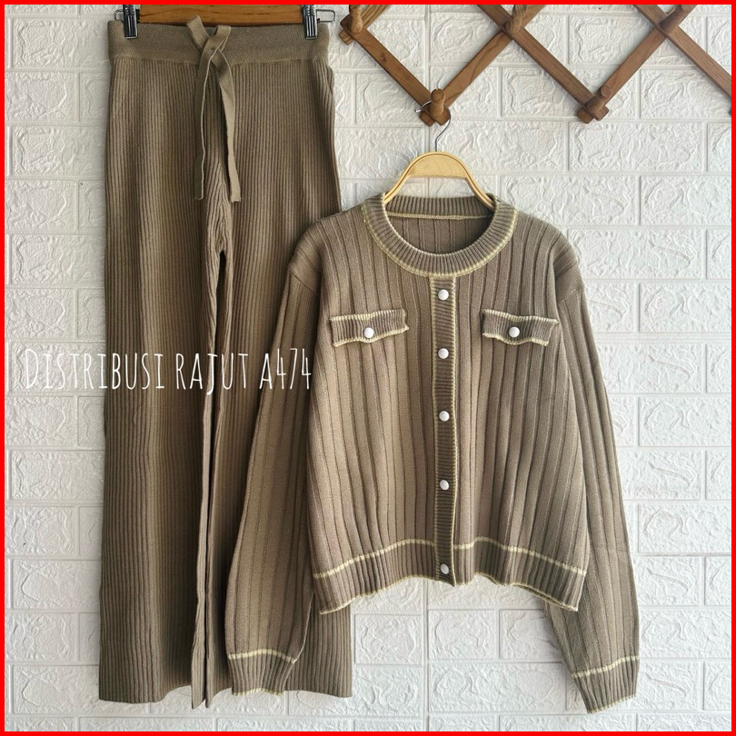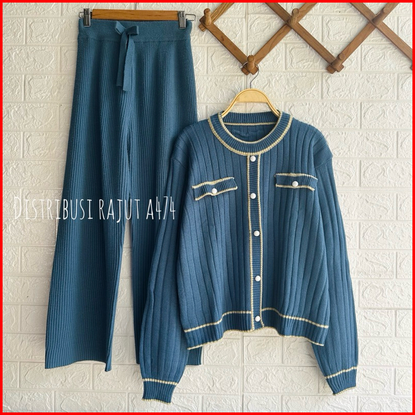 Oneset Sydney Knits Cardi Setelan Celana Kulot Rajut Wanita