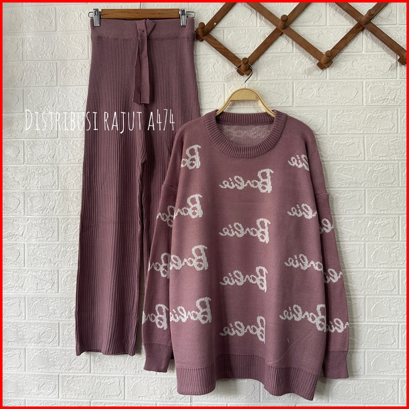 Oneset Sweater Barbie Polos Oversize Setelan Celana Kulot Rajut Wanita