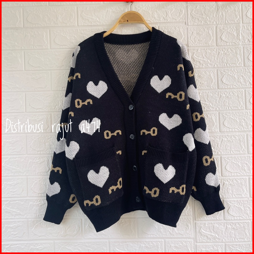 Cardigan Rajut Kancing Valentine Motif Love Kunci Oversize Outer Wanita