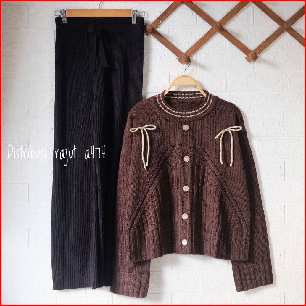 Oneset Kelly Sweater Rajut Setelan Celana Kulot Rajut Wanita